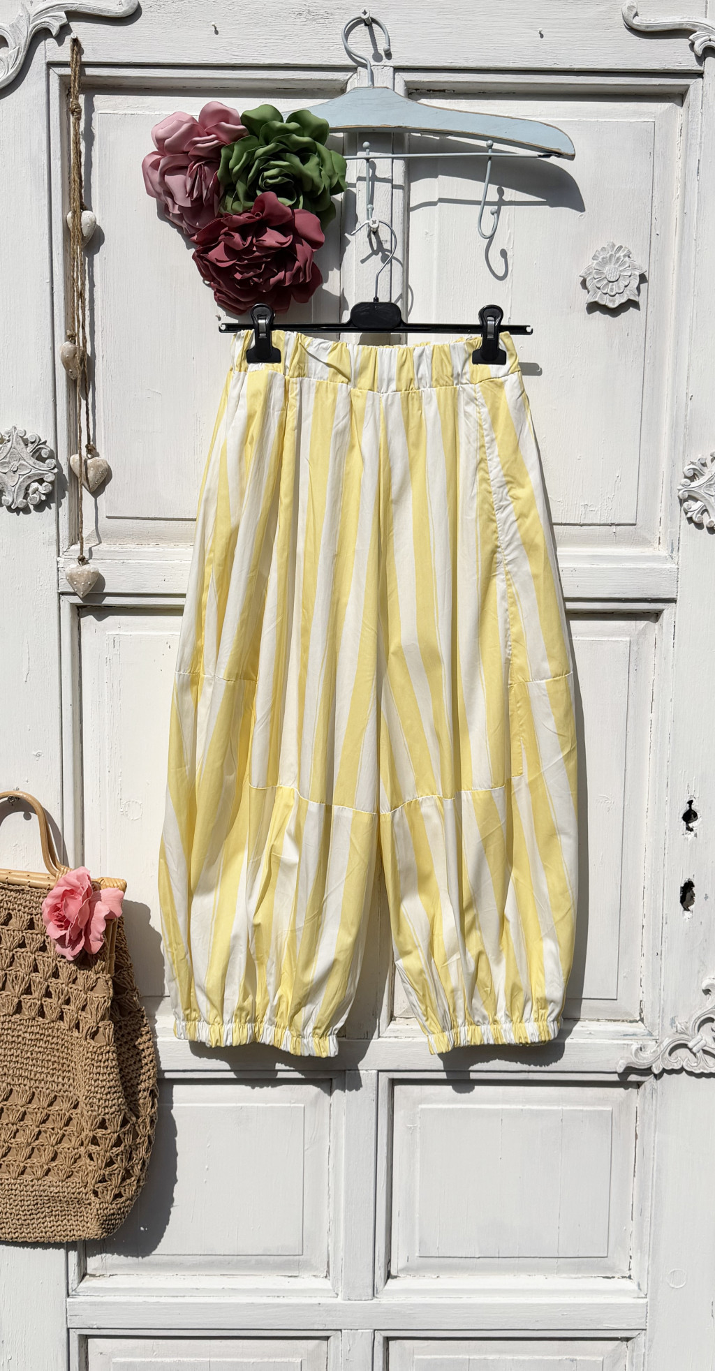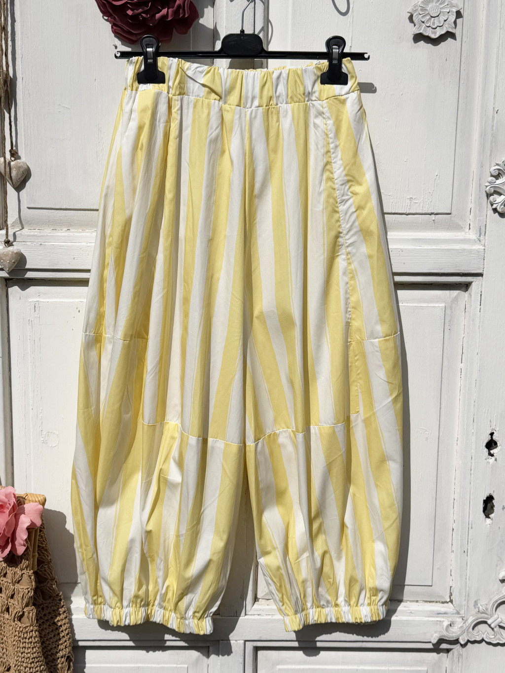Olasz, 3/4-es cargo, bő nadrág, sárga/fehér csíkokkal, zsebekkel:))