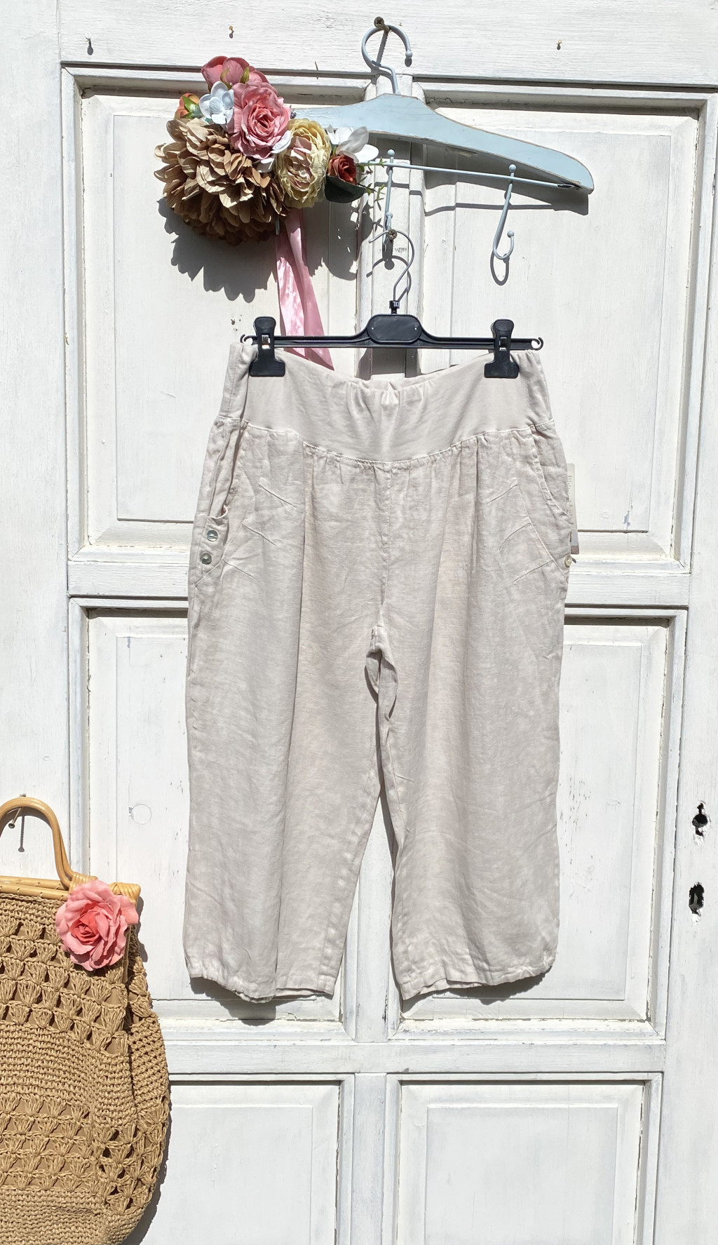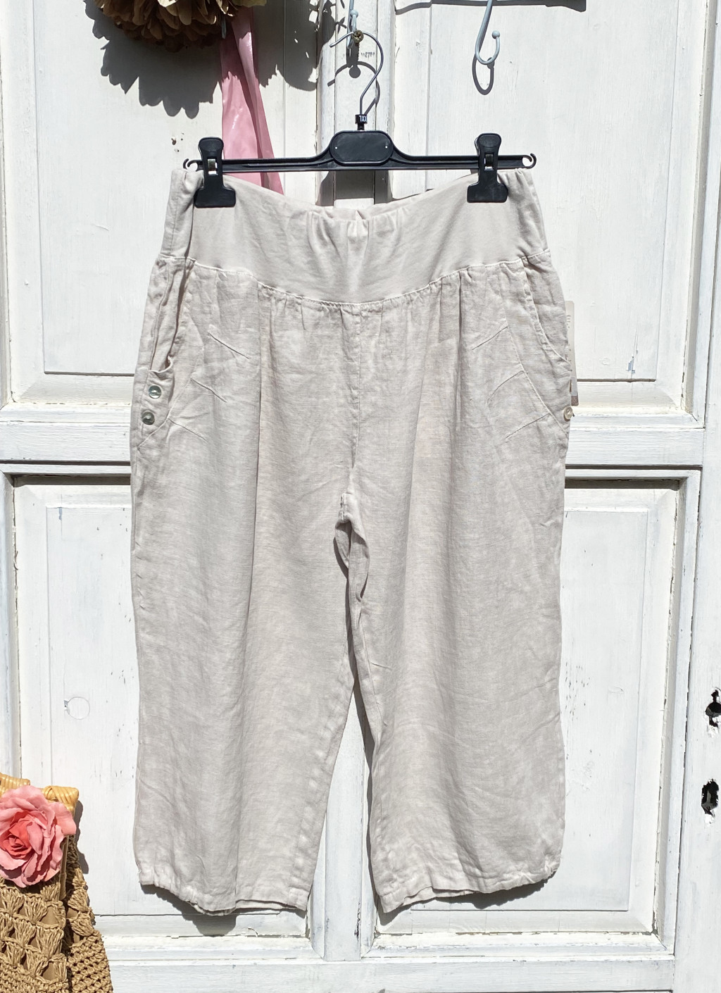 Olasz, 3/4-es len, bézs, zsebes nadrág:))