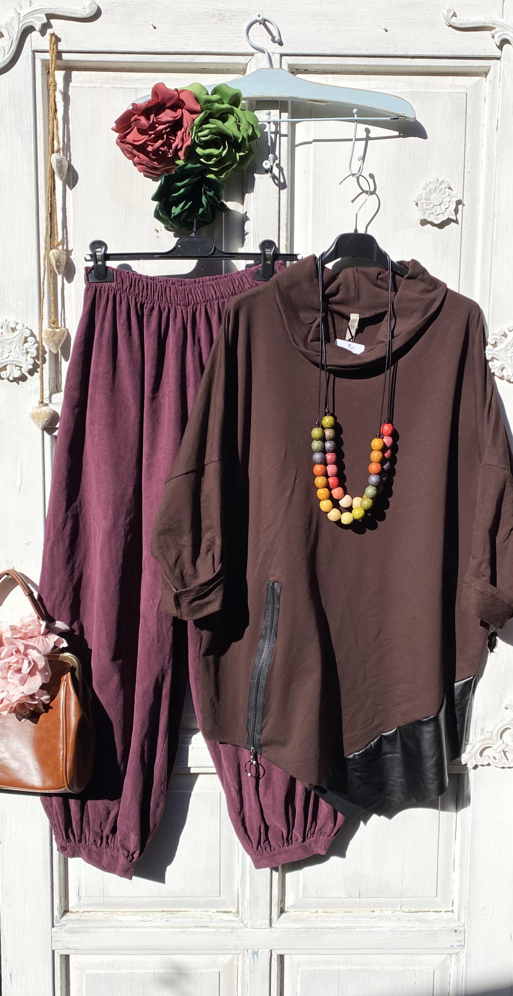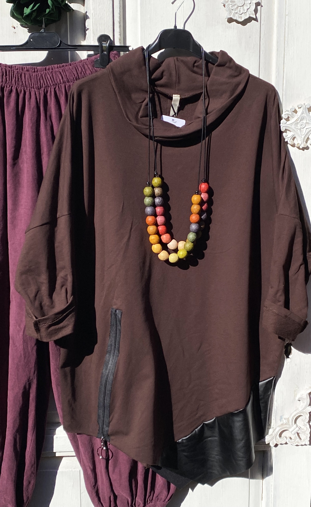 Olasz, alján extra szabású barna tunika, több anyagból:))
