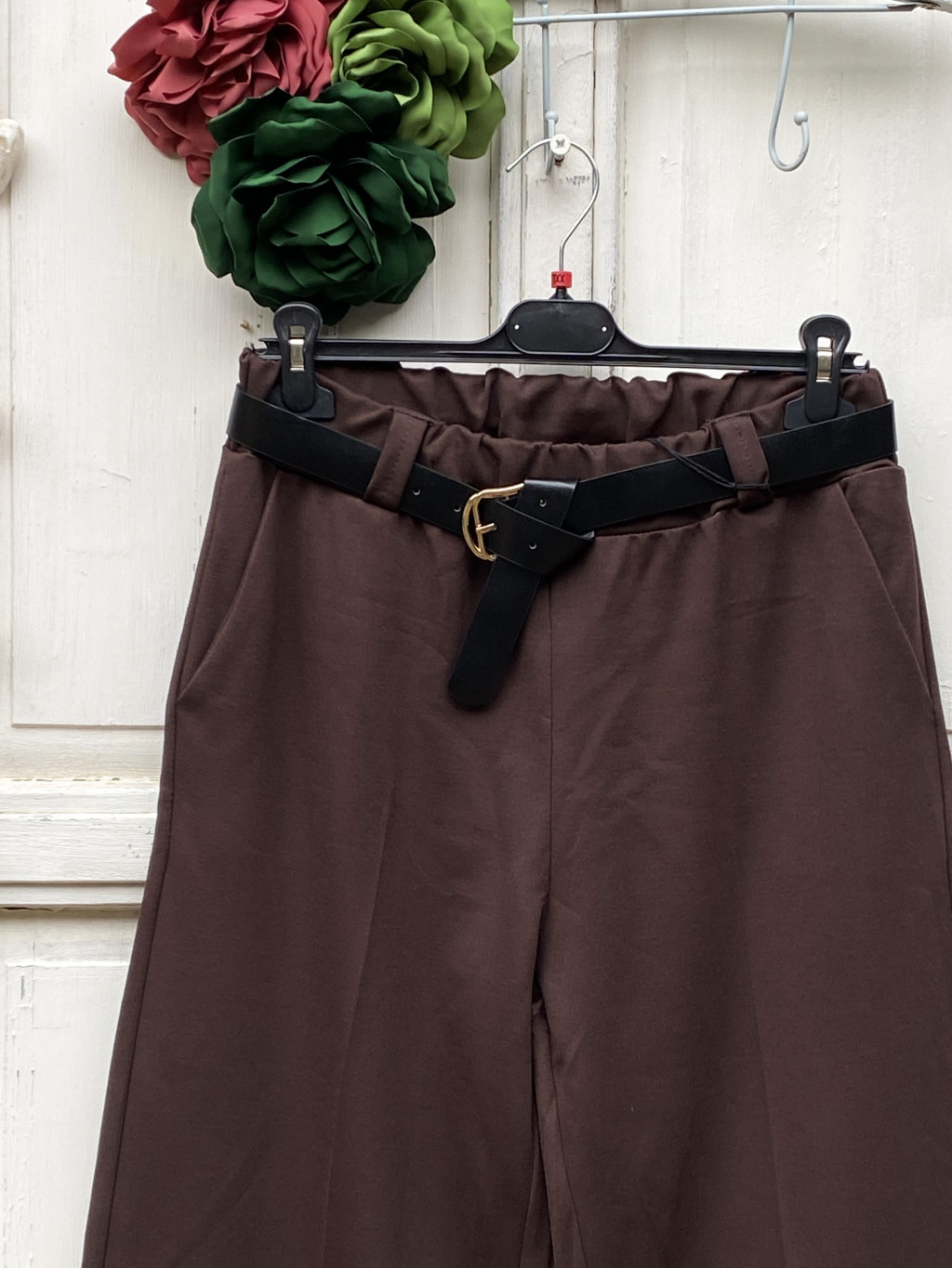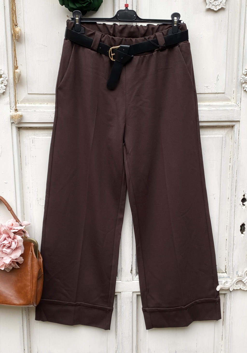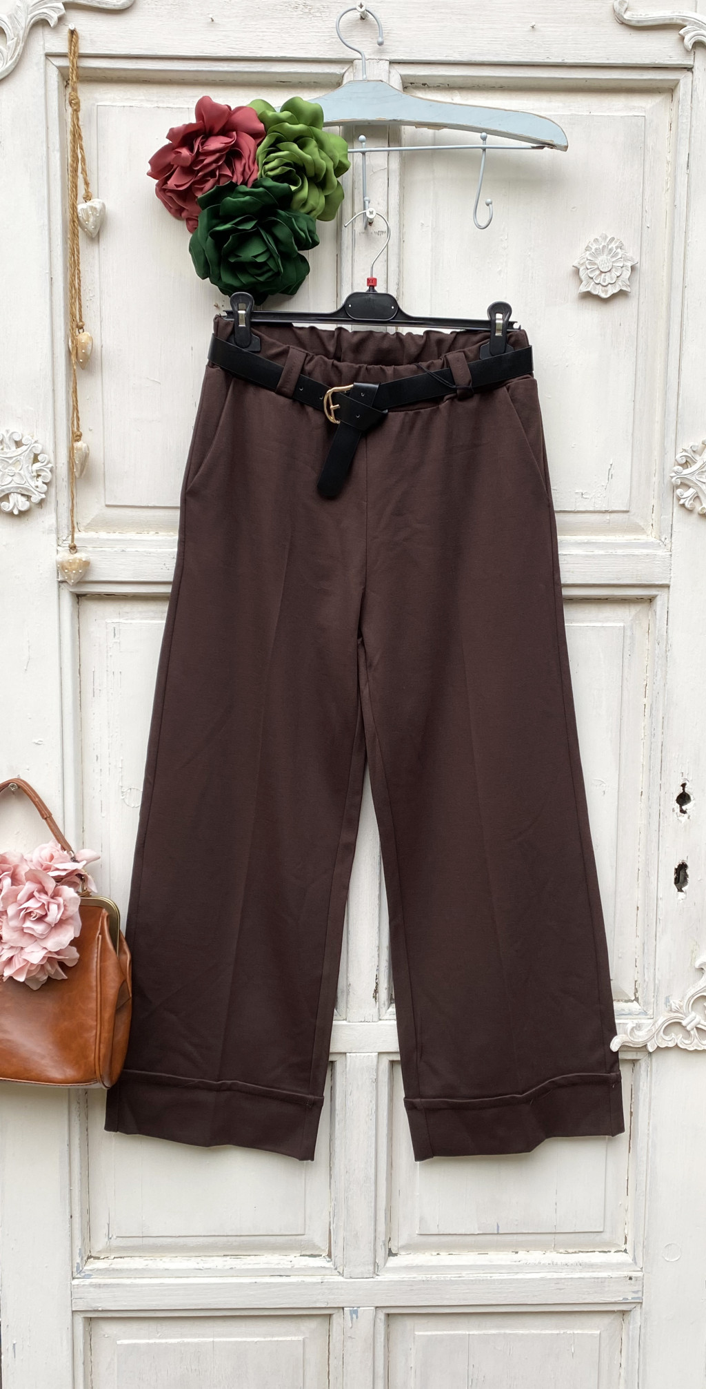 Olasz, alján hajtókás, barna bő szárú nadrág, zsebekkel ,ajándék övvel:))