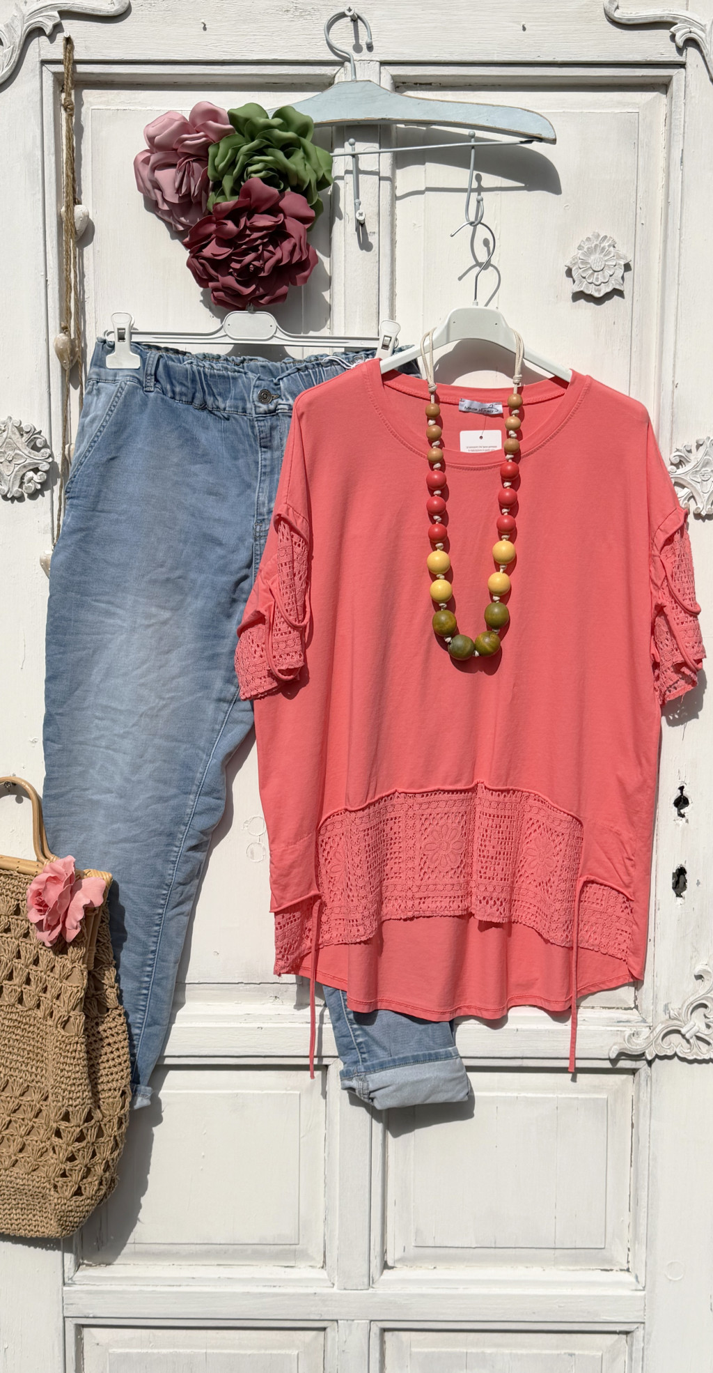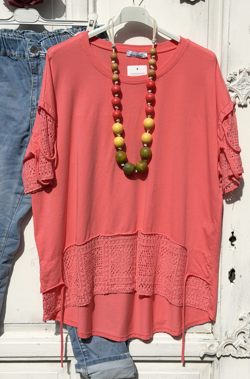 Olasz, alján kerekített, elején és ujján csipkés rózsa bors, hosszított felső:))