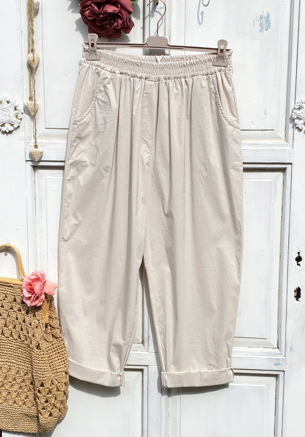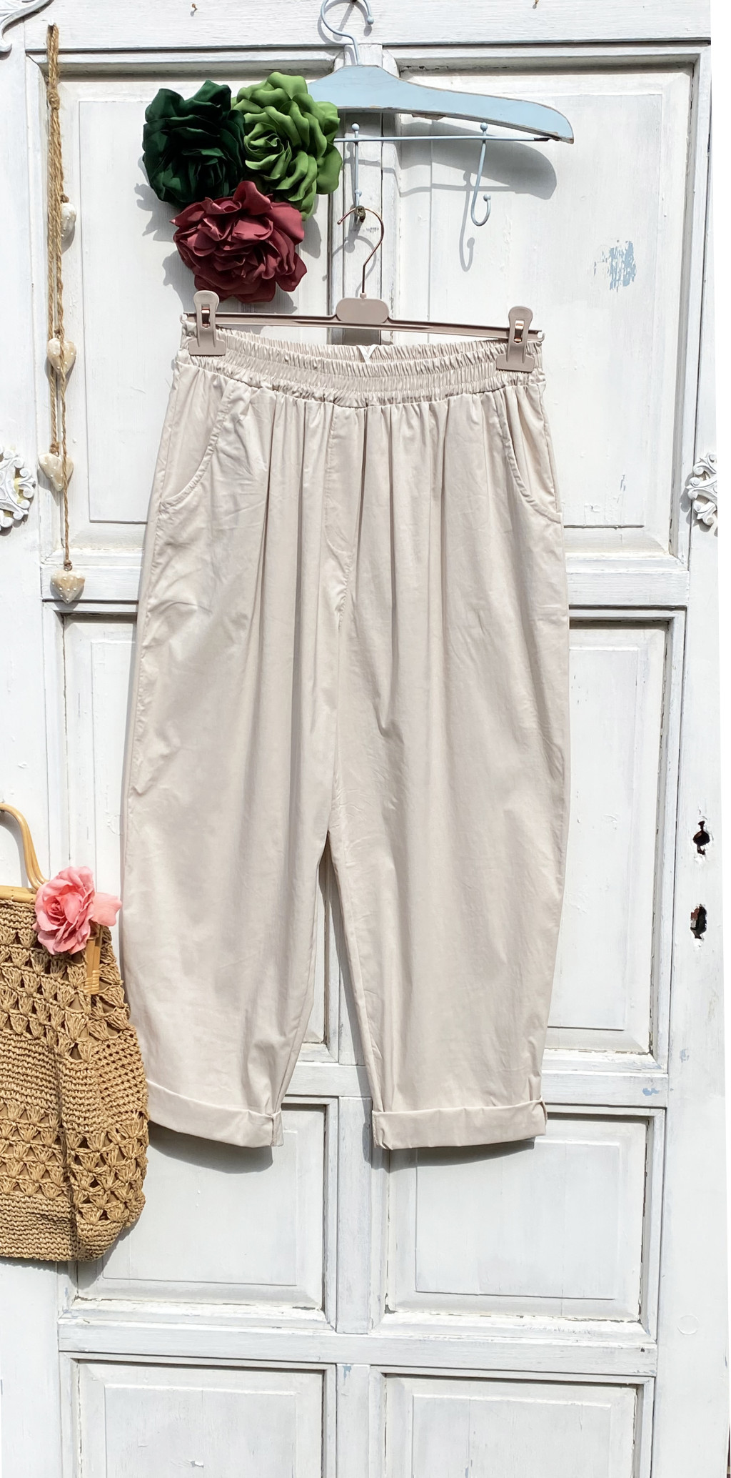 Olasz, bővebb szabású bézs zsebes nadrág:))