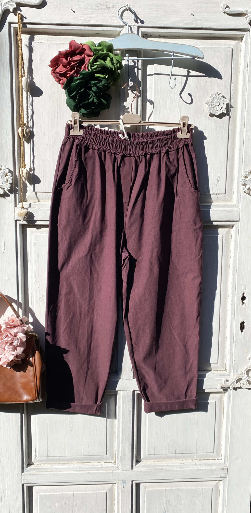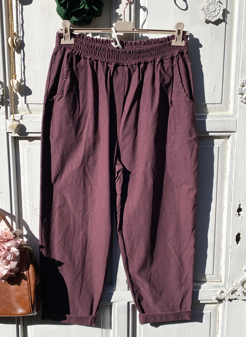 Olasz, bővebb szabású burgundi/szilvás zsebes nadrág:))