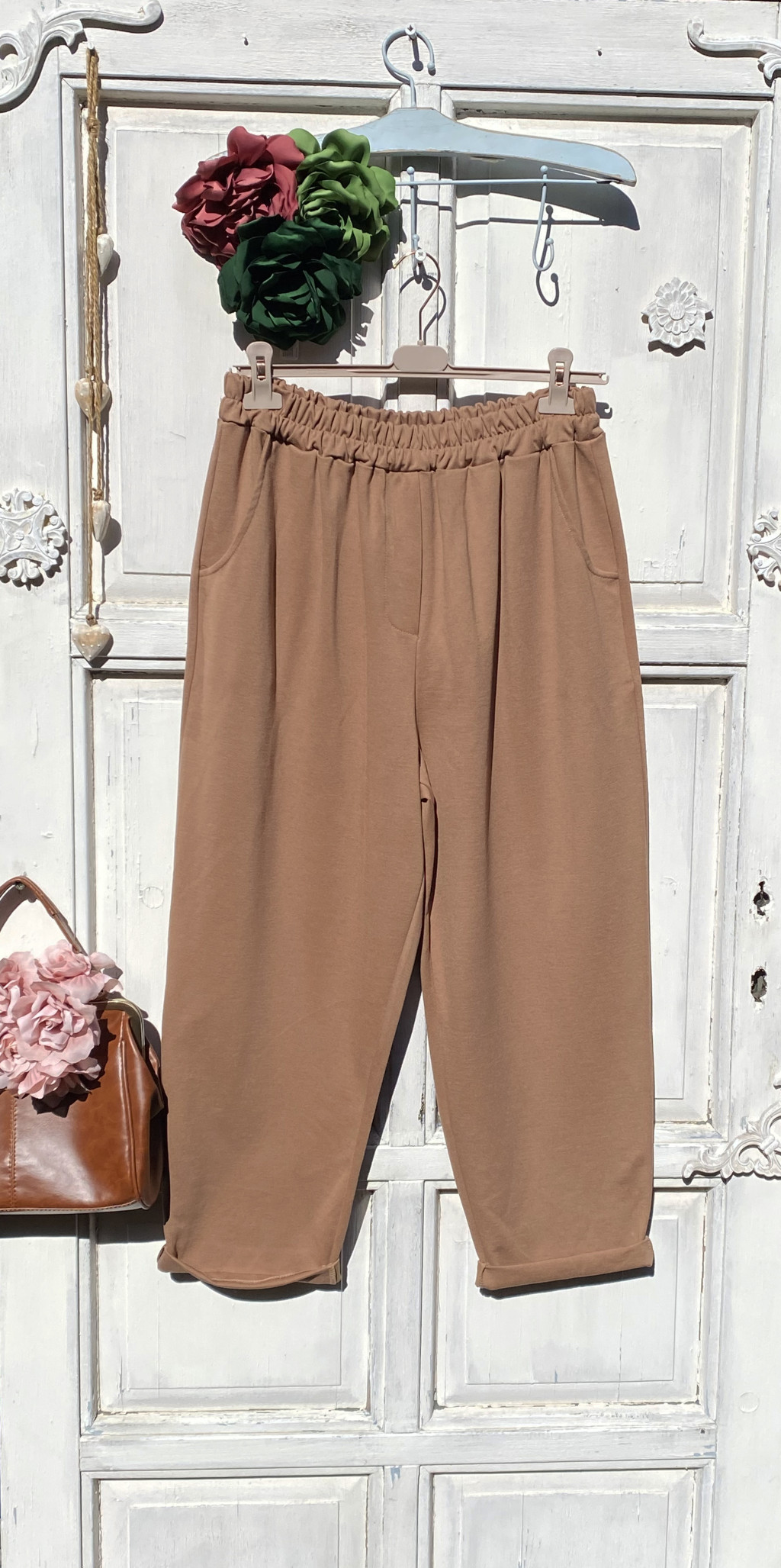 Olasz, bővebb szabású, zsebes karamell nadrág:))