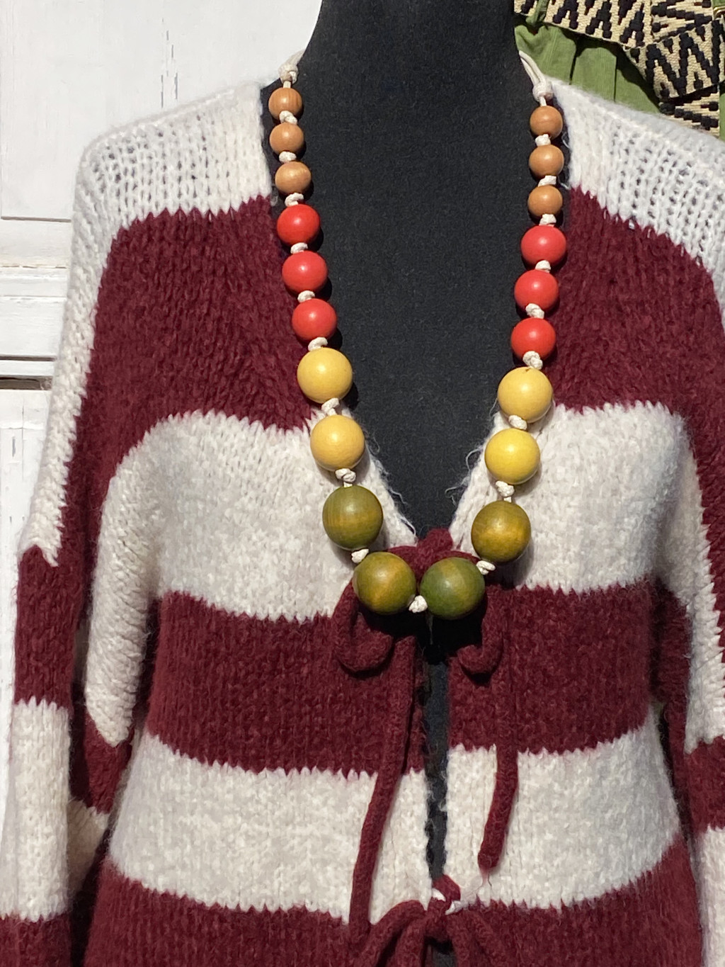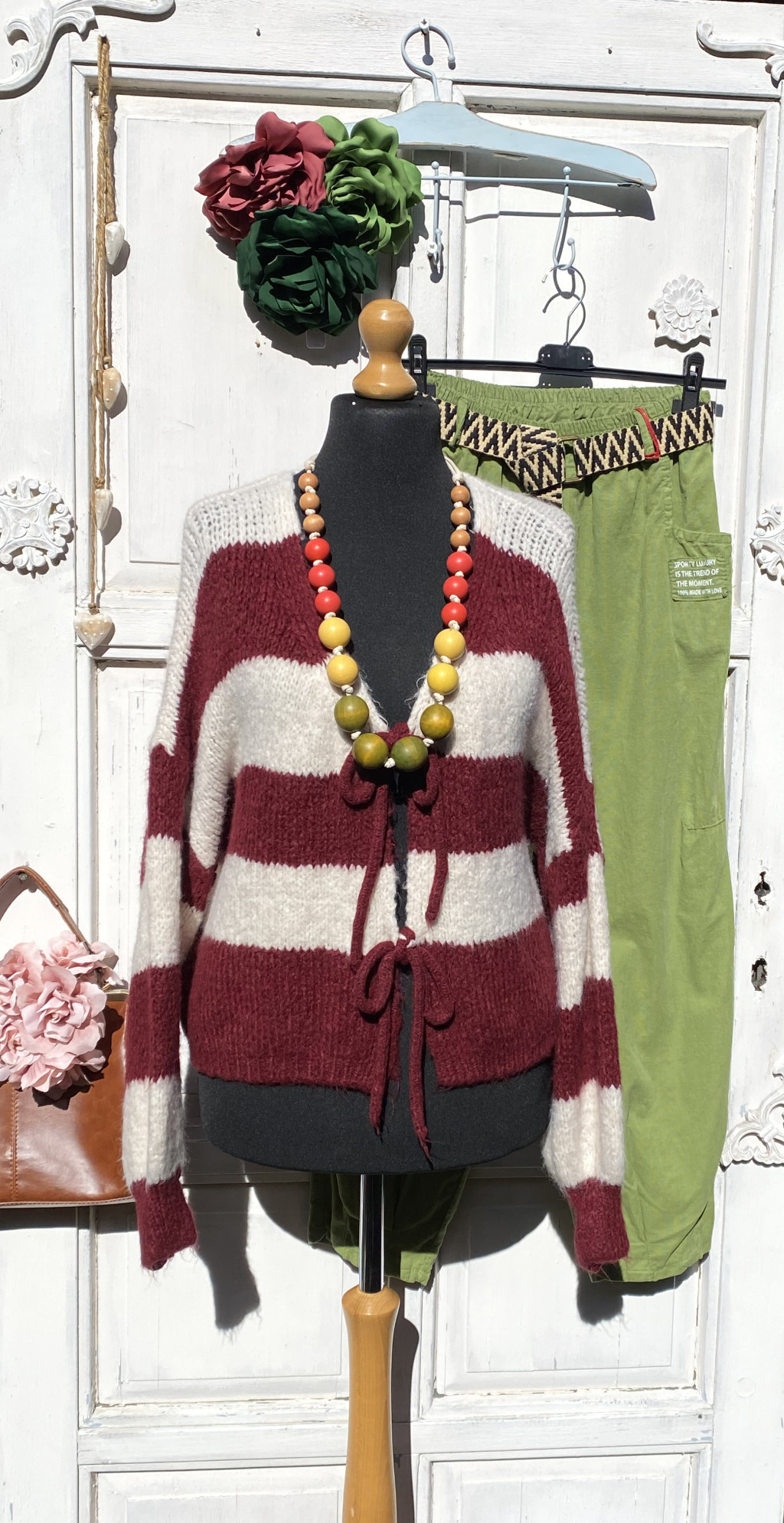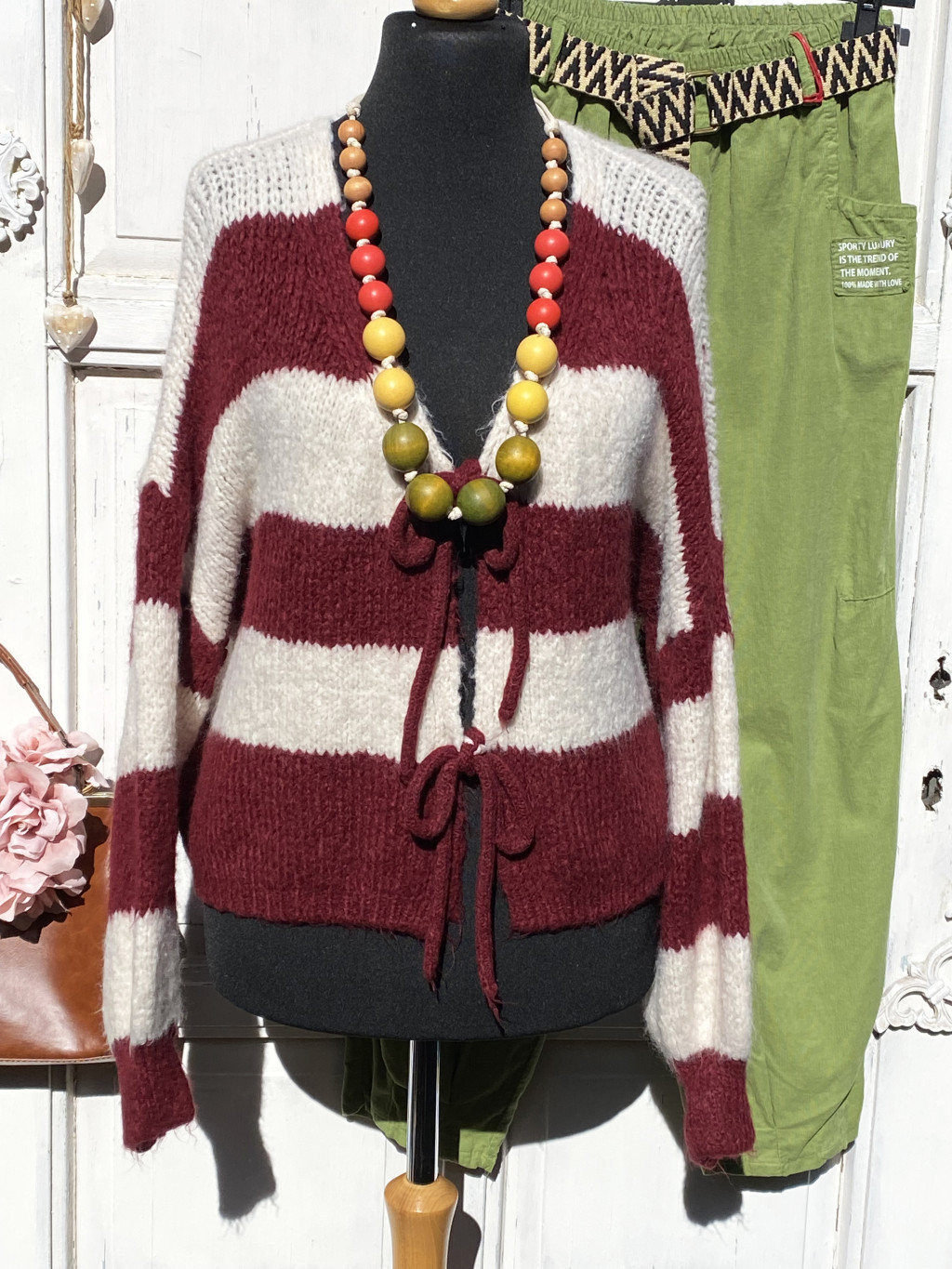Olasz, burgundi csíkos kardigán, elején kötőkkel:))