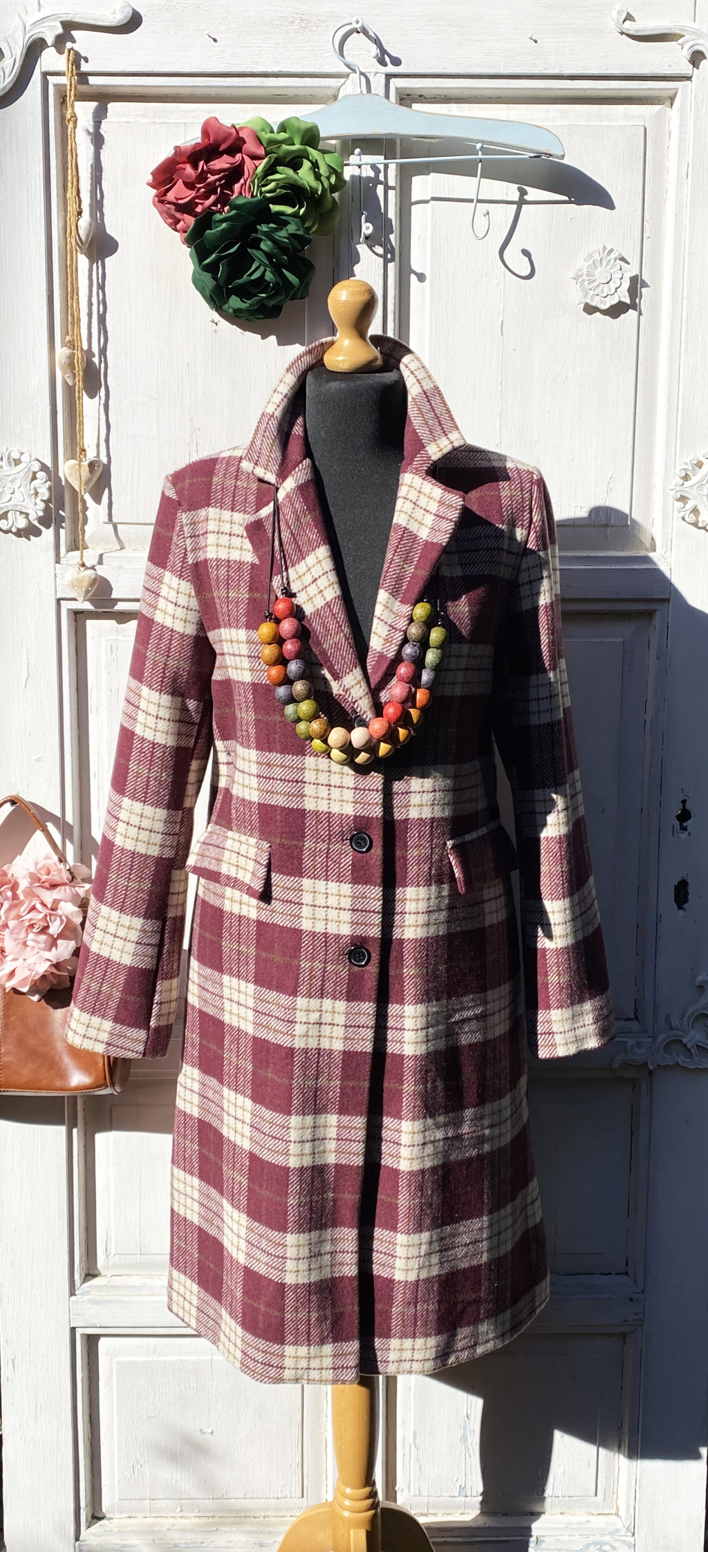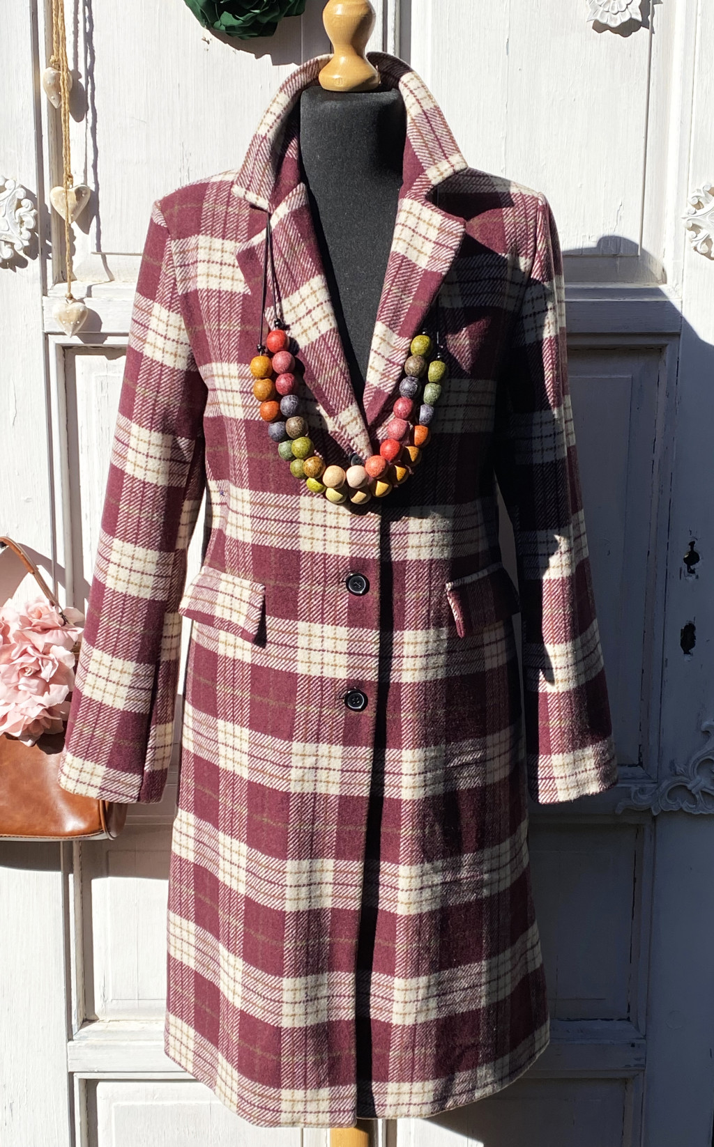Olasz, burgundi kockás kabát, zsebekkel:))