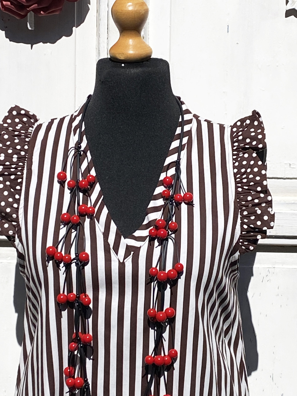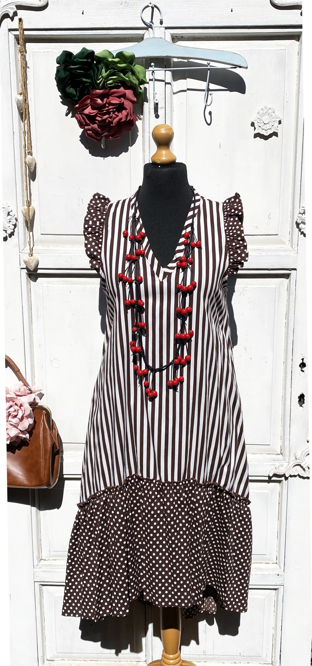 Olasz, csíkos/pöttyös ruha, némi fodorral, barna alappal:))