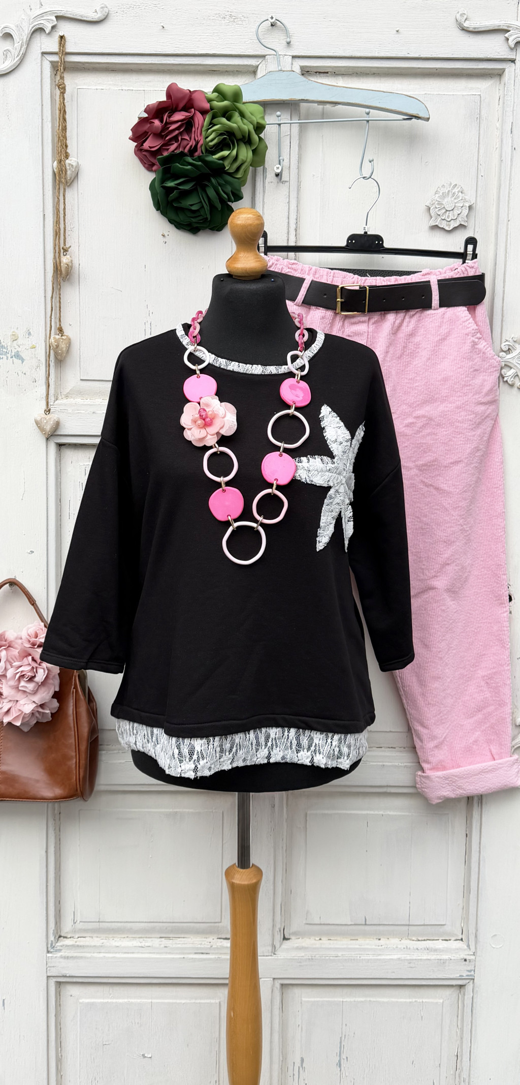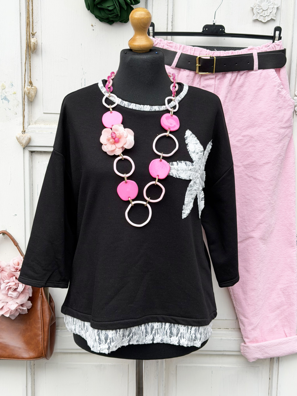 Olasz, csipke nyakú, aljú, mintájú pulcsi, fekete alappal:))