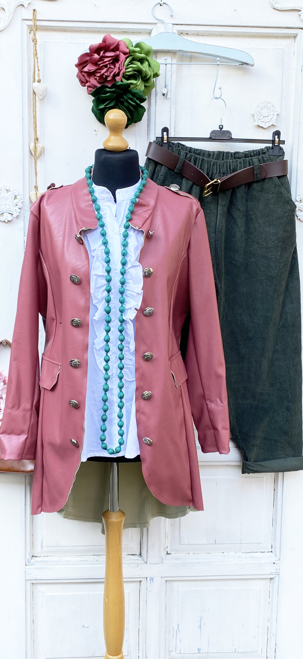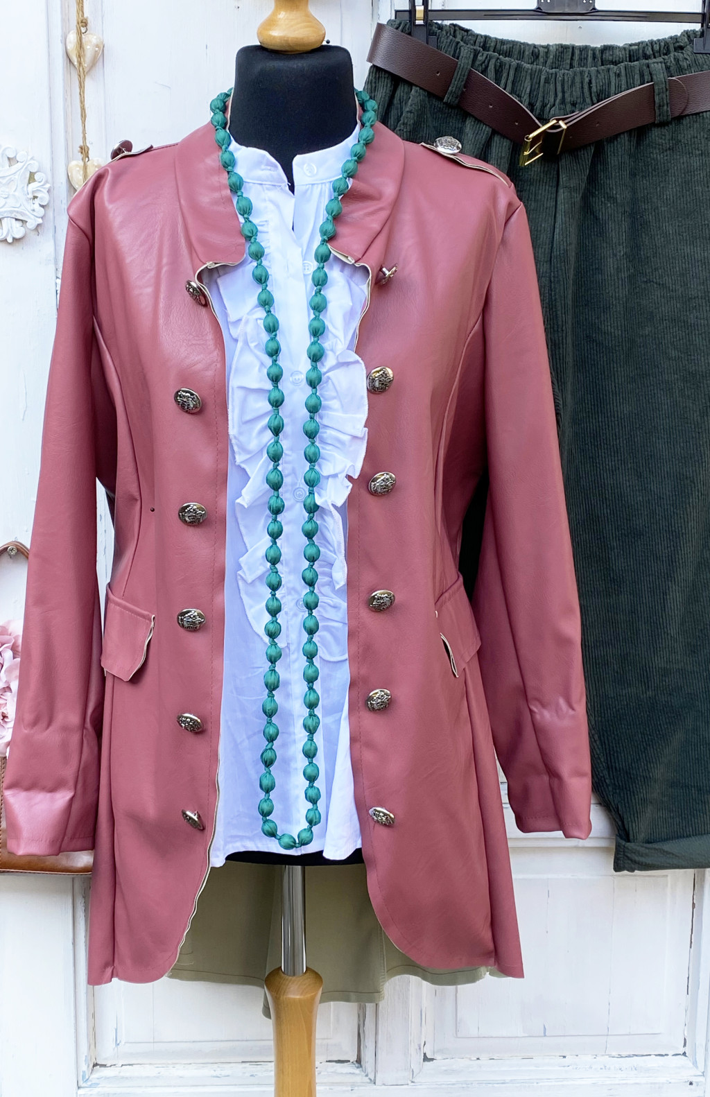 Olasz, dupla soros gombos, hosszított bőr hatású rózsa bors kabátka/blézer:))