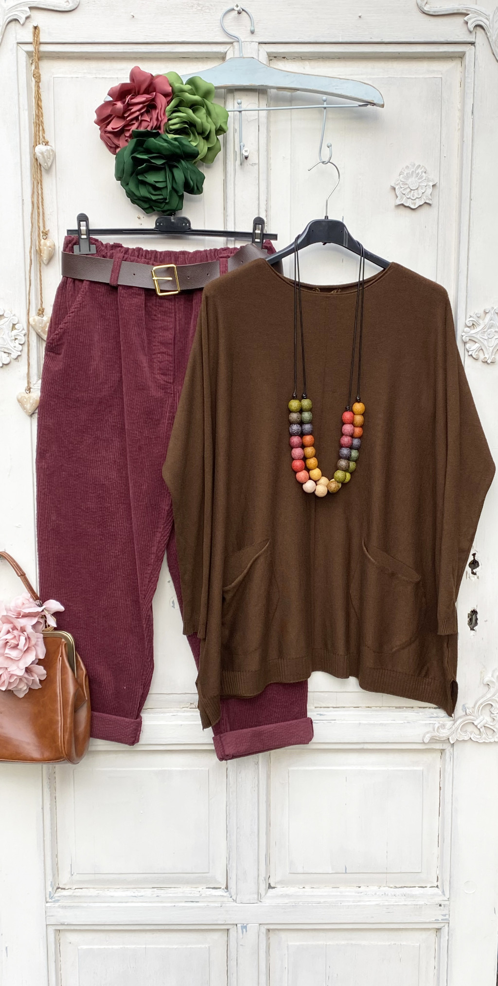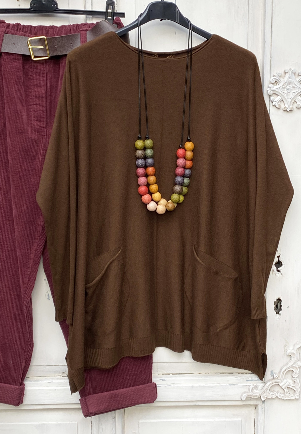 Olasz, elején két zsebes, hosszított barna kötött pulcsi:))