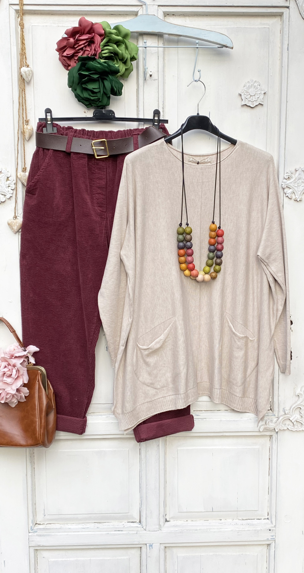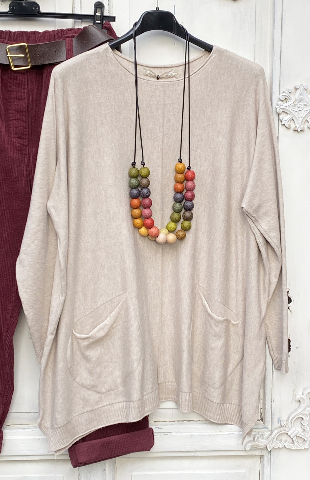 Olasz, elején két zsebes, hosszított bézs kötött pulcsi:))
