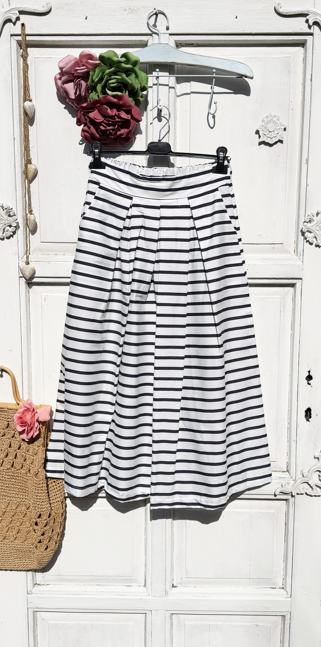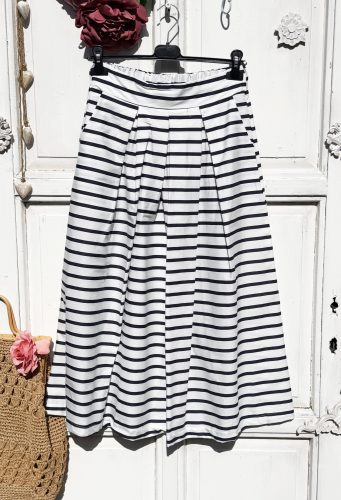 Olasz, elején rakott kék/fehér csíkos, zsebes szoknya:))