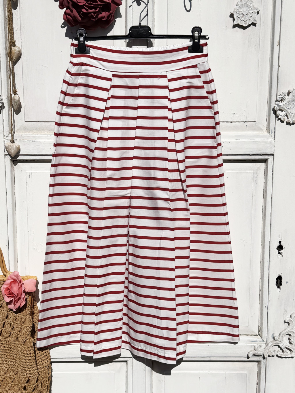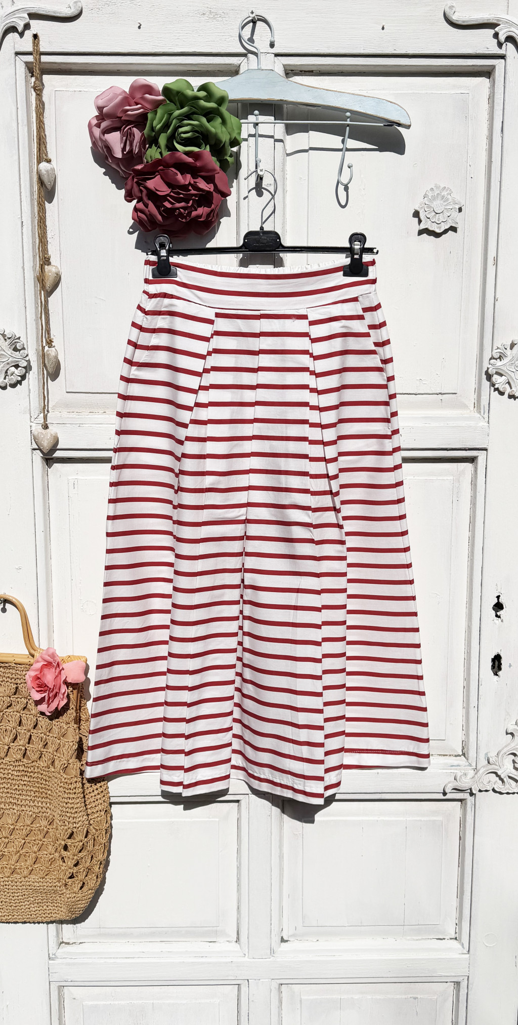 Olasz, elején rakott, piros/fehér csíkos szoknya, zsebekkel:))