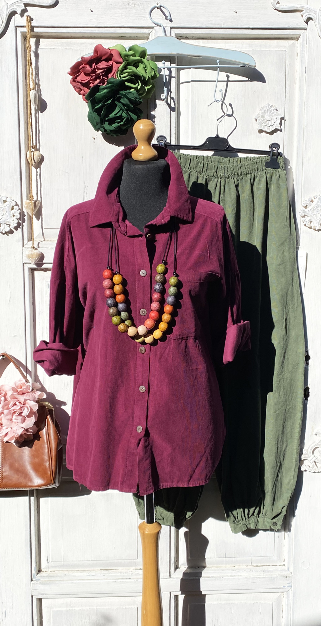 Olasz, elején zsebes, mikrokord ing, burgundi színben:))