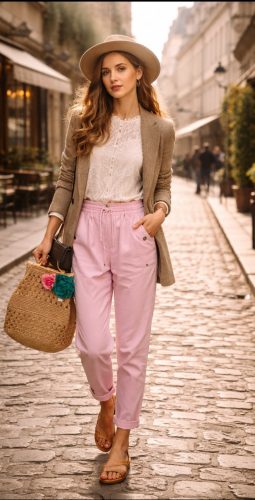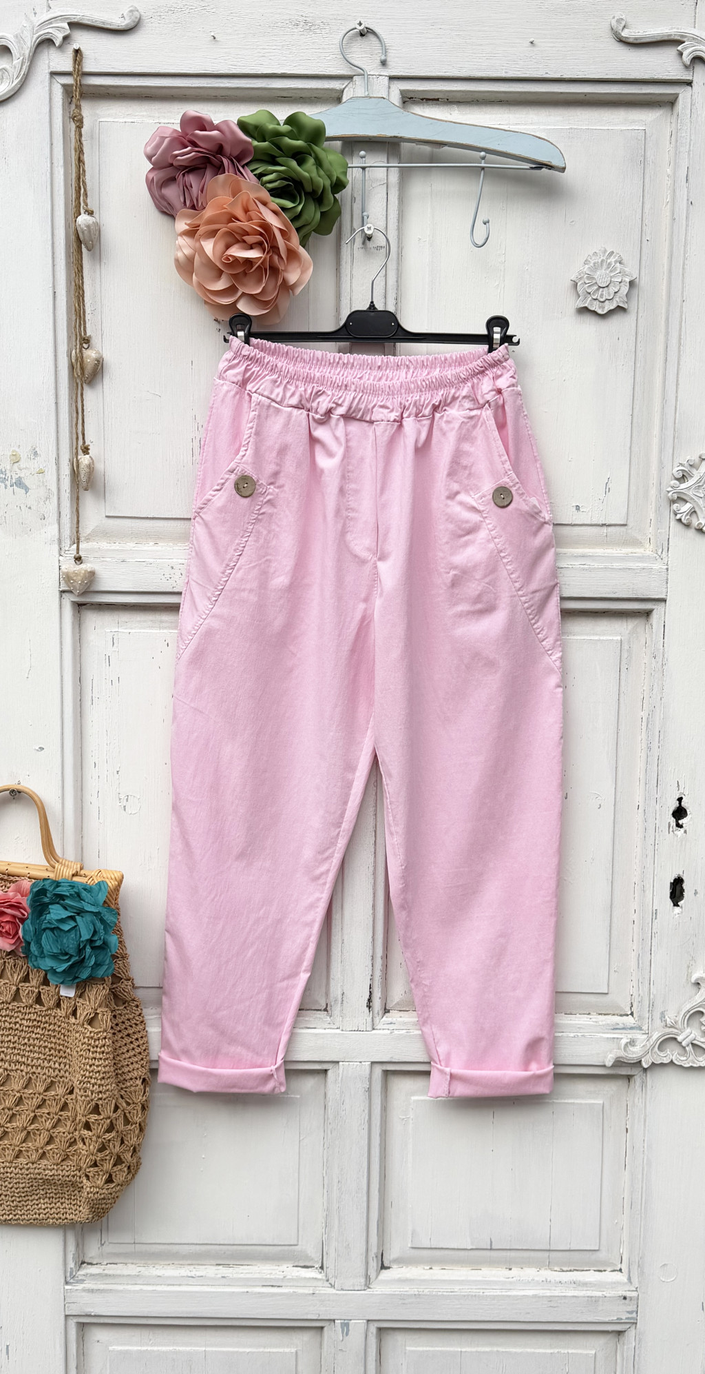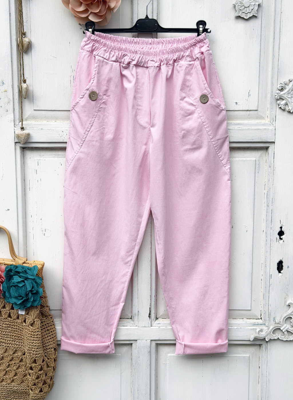 Olasz, extra kényelmes és rugalmas gombos, zsebes rózsaszín nadrág:)))