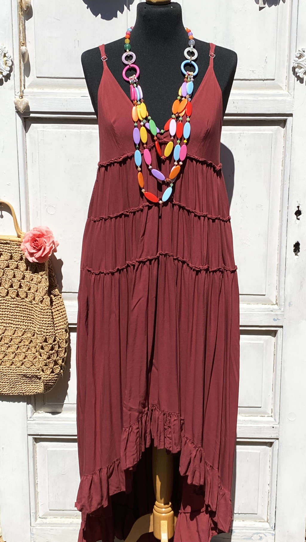 Olasz, fodros, hátul hosszított burgundi ruha: hölgyeim: romantikára fel:))