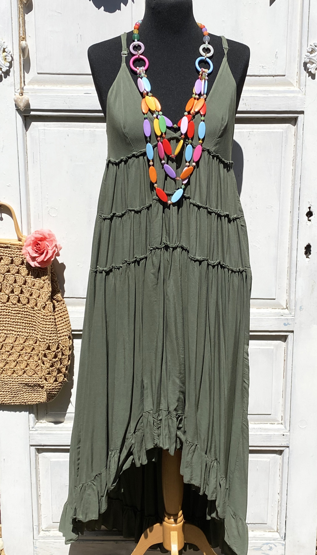 Olasz, fodros, hátul hosszított keki zöld ruha: hölgyeim: romantikára fel:))