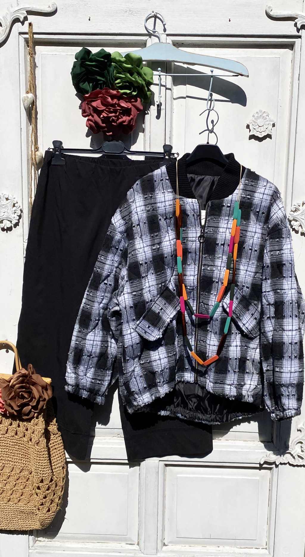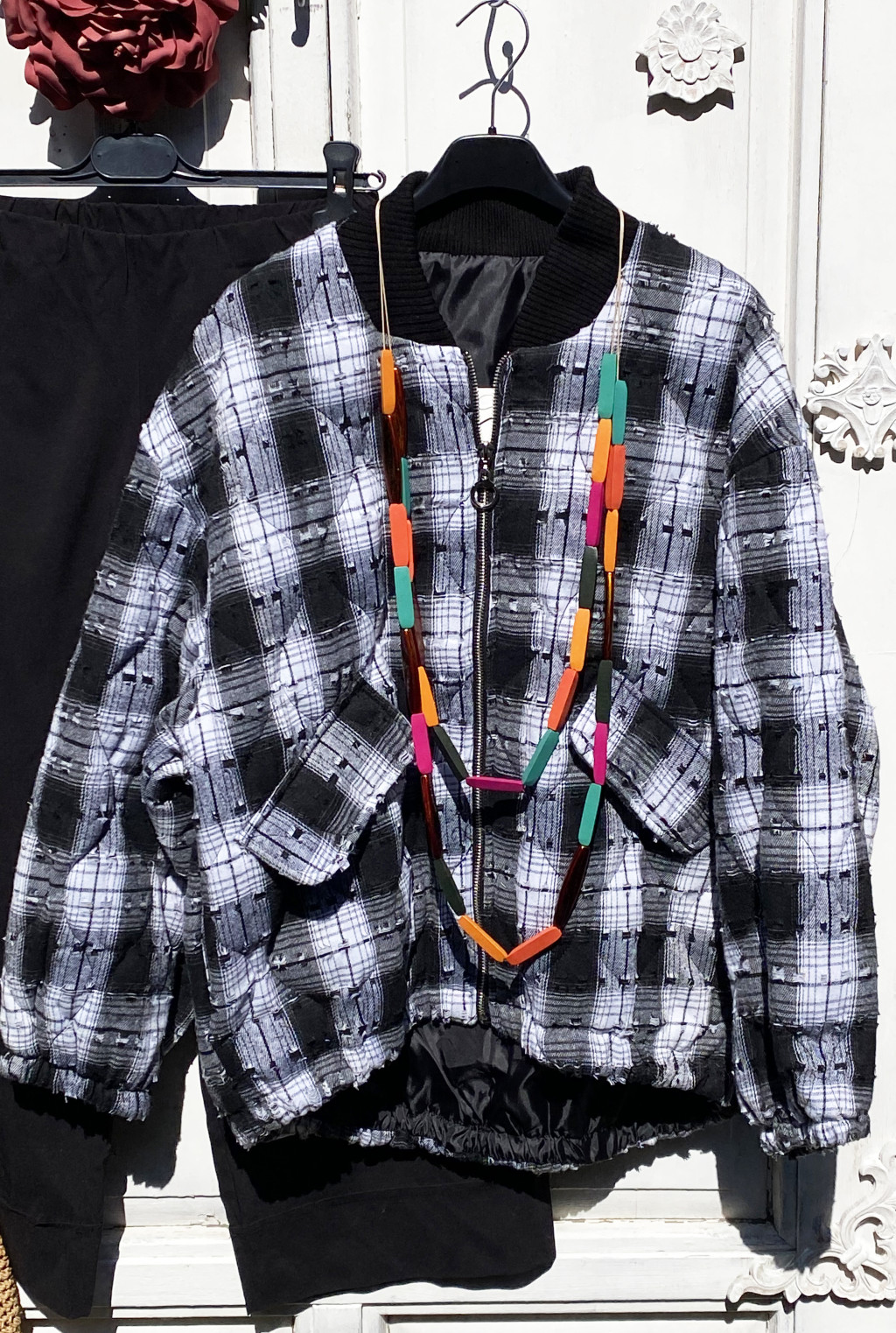 Olasz, igen extra anyagú, steppelt/kockás, zsebes, bélelt kabát, fekete/fehér alappal:))