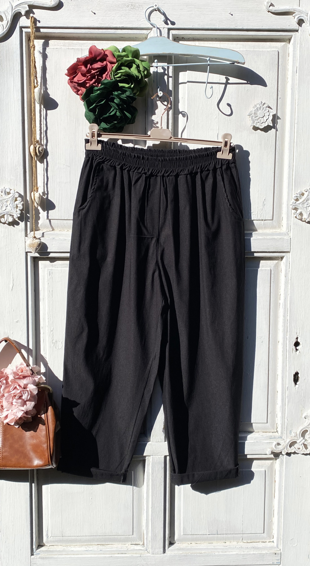 Olasz, lazább szabású nadrág, zsebekkel, fekete színben:))