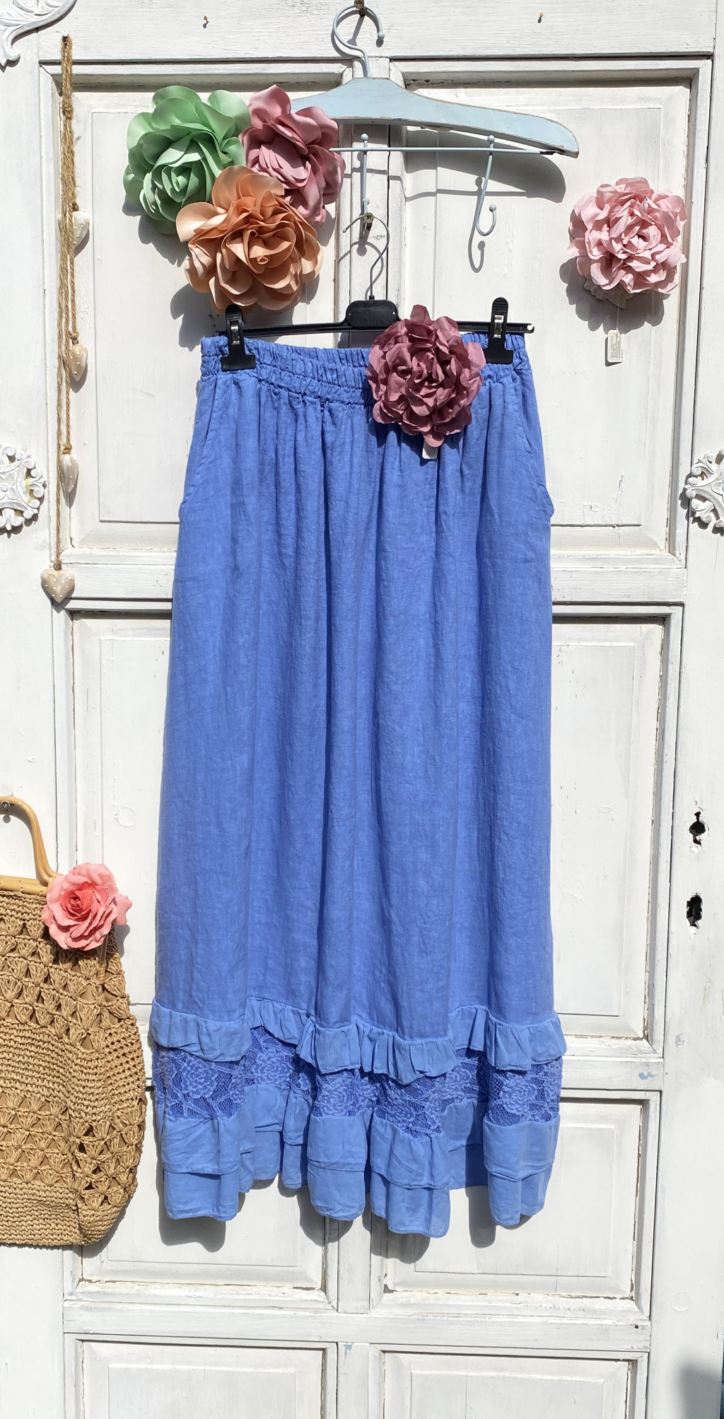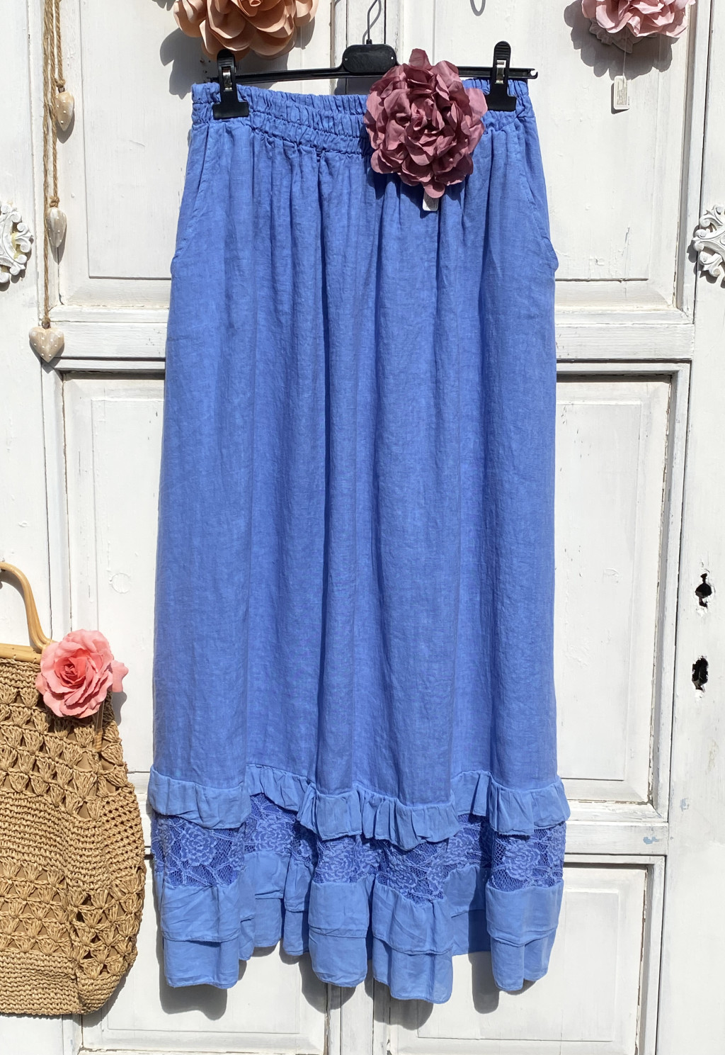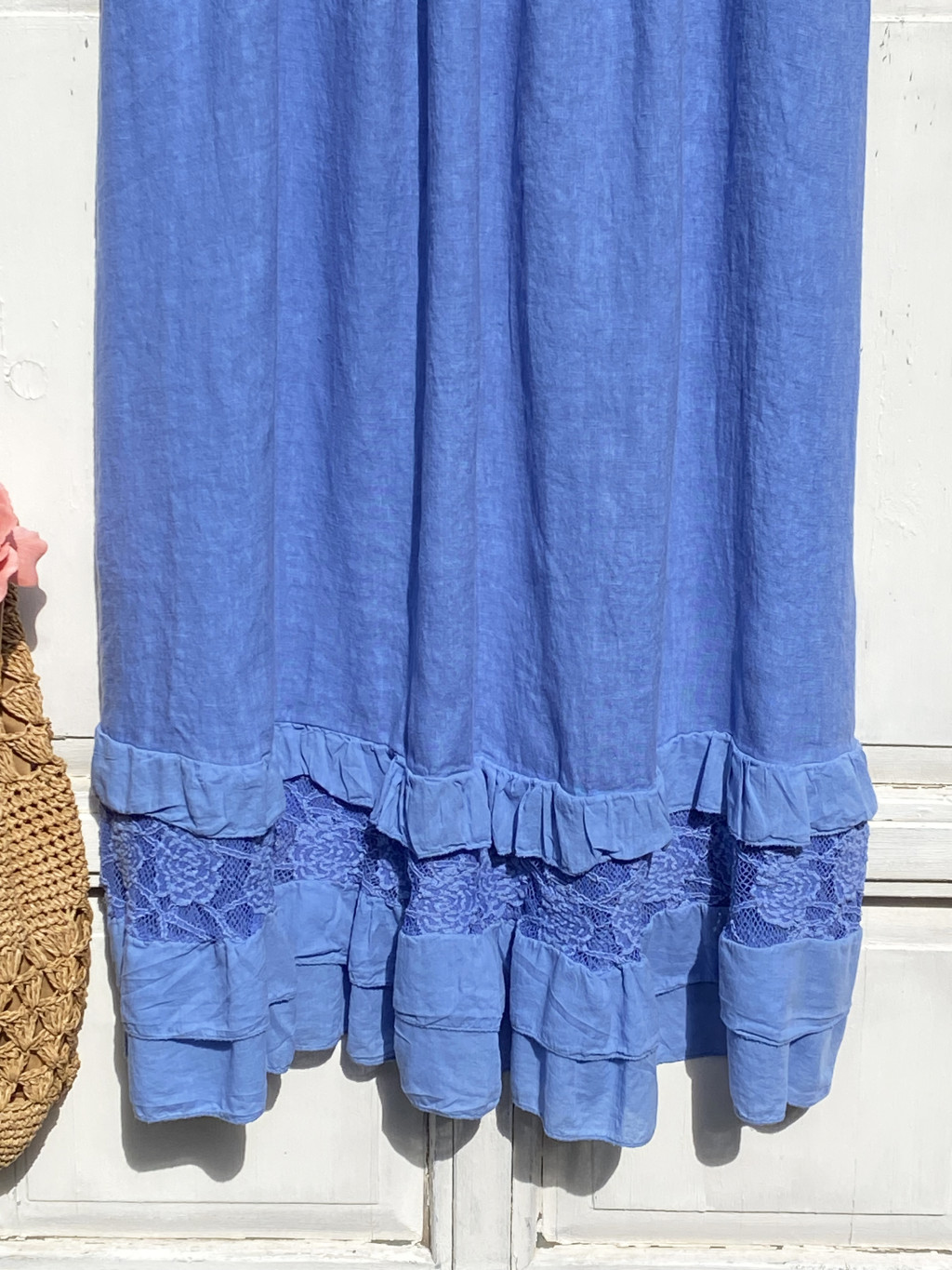 Olasz, len, alján rétegelt fodros szoknya, kék színben:))