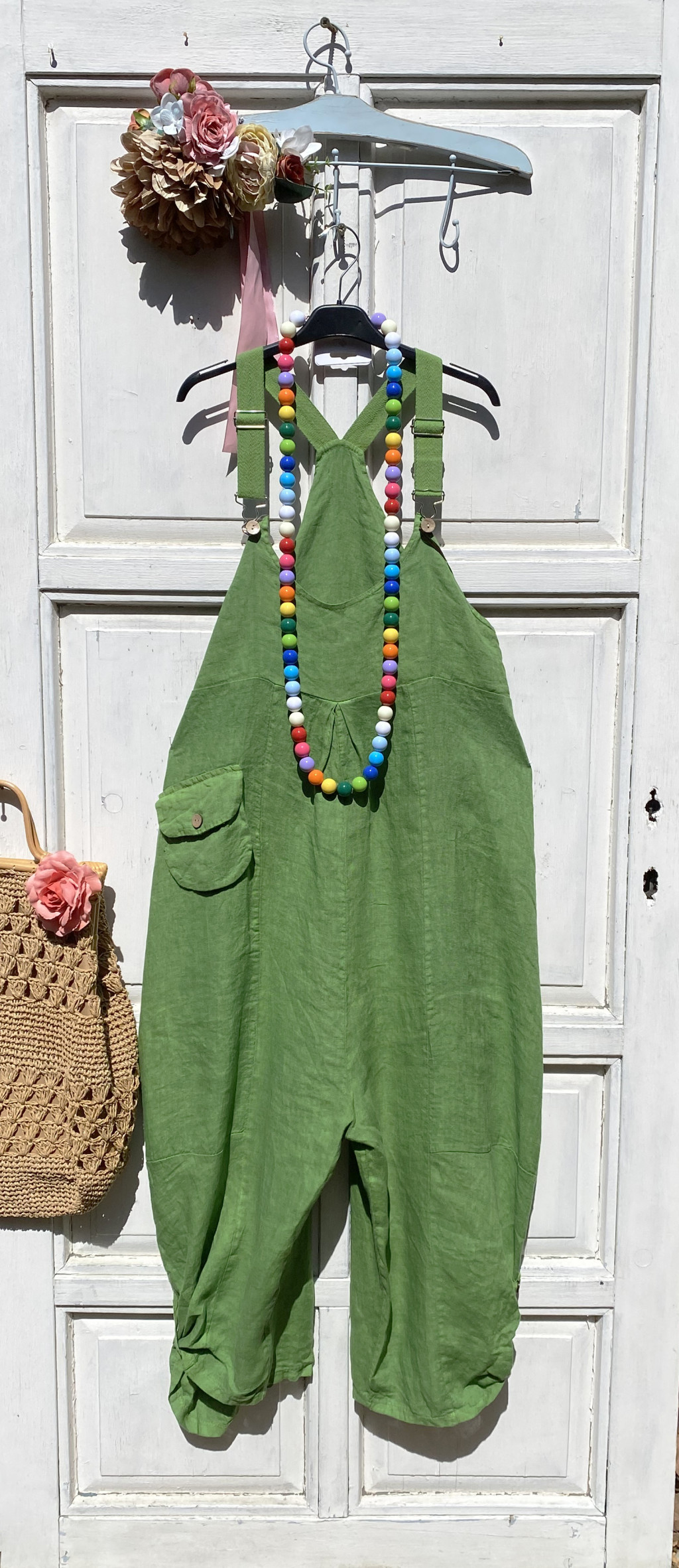 Olasz, len kertész nadrág, zsebekkel, zöld színben:))
