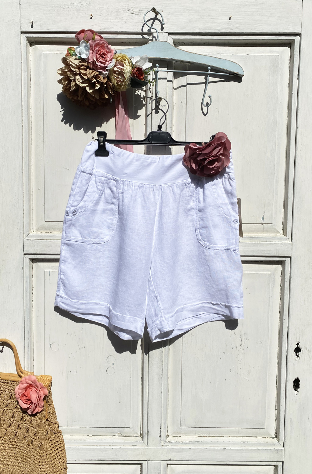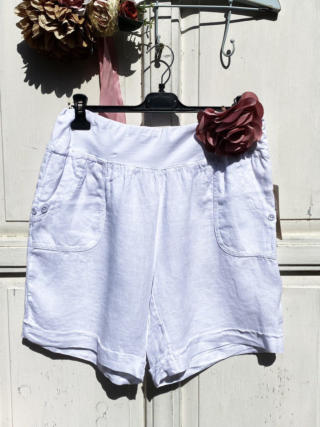 Olasz, len rövid nadrág, zsebekkel, fehér színben:))