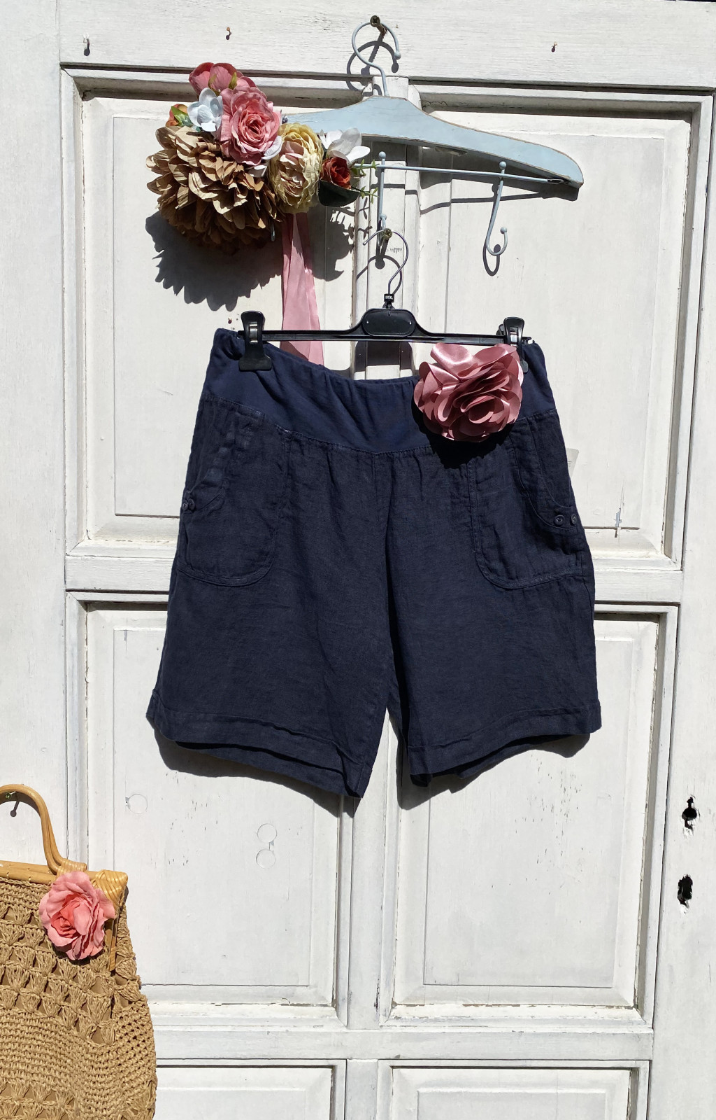 Olasz, len rövid nadrág, zsebekkel, kék színben:))