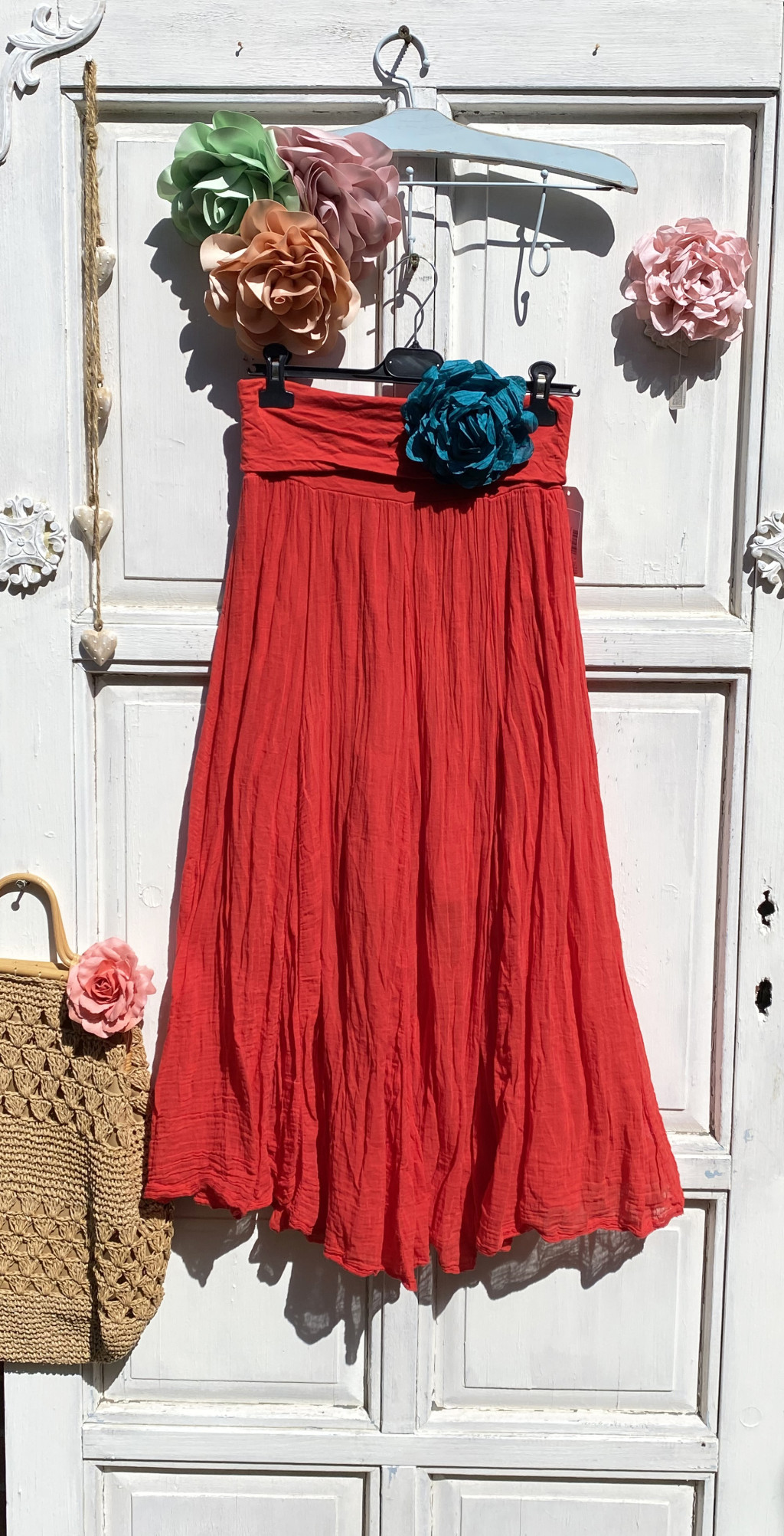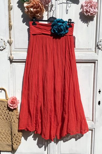 Olasz, libbenős pamut gyűrt szoknya, piros színben:))