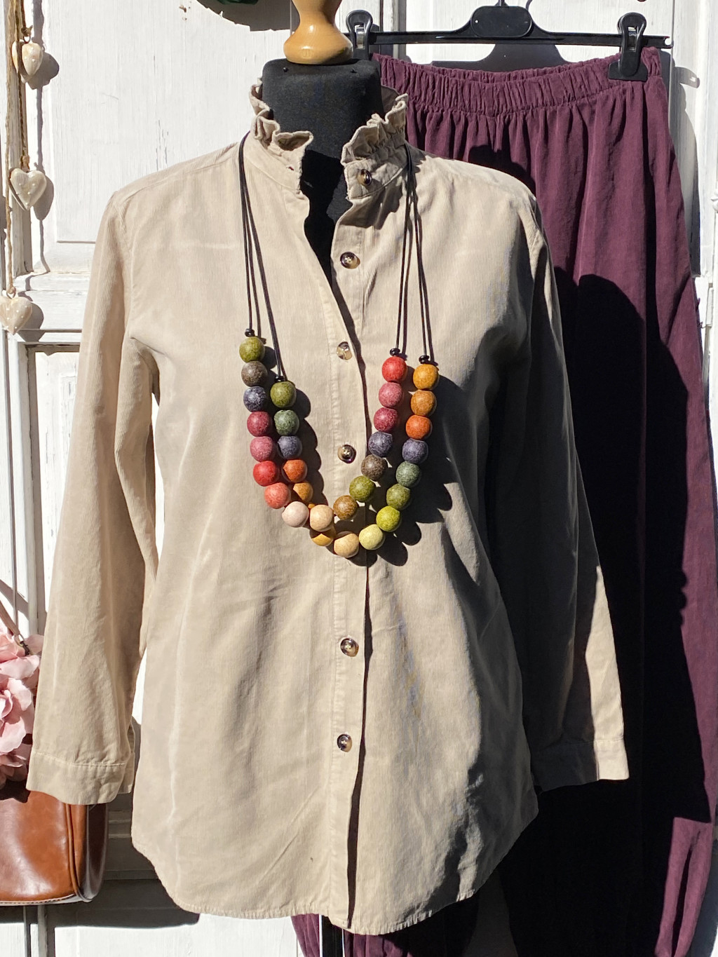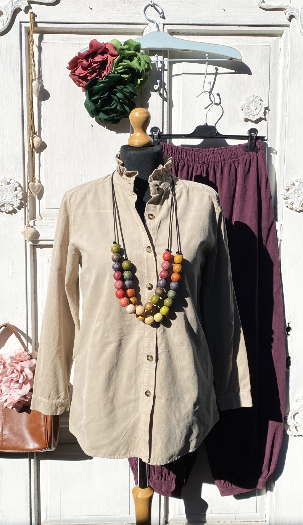 Olasz, nyakánál bájosan fodros, mikrokord ing, bézs színben:))