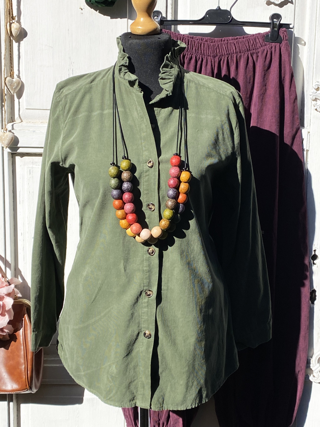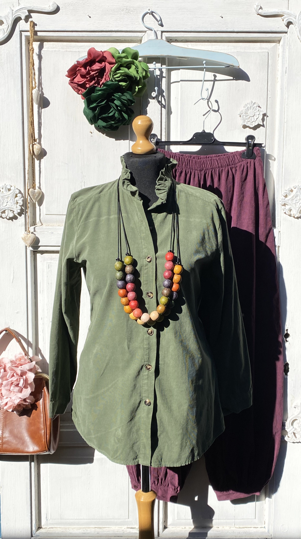 Olasz, nyakánál bájosan fodros, mikrokord ing, zöld színben:))
