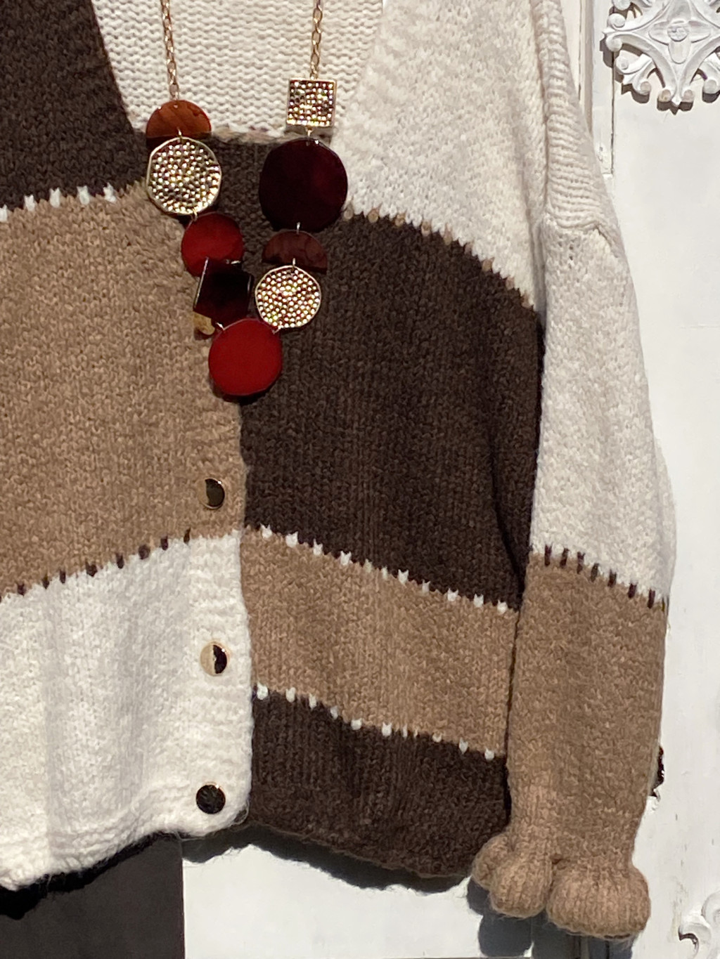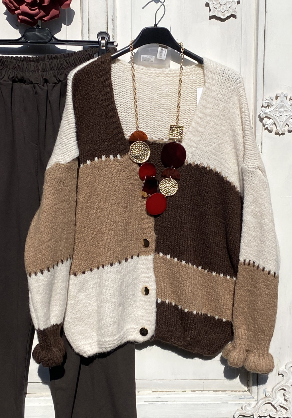 Olasz, patchwork kötött kardigán, gombokkal, fodros ujj résszel:))