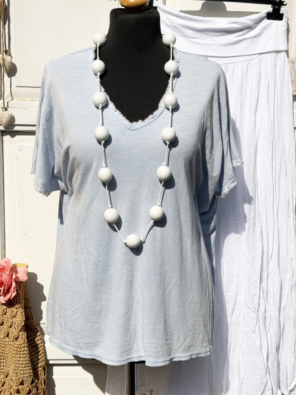 Olasz, rojtozott/koptatott/hosszított pasztell kék felső:))