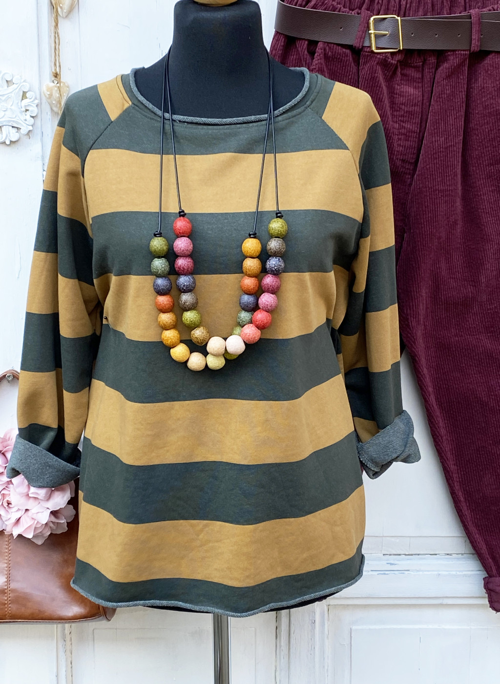 Olasz, sárga, barna/szürkés csíkos pulcsi:))