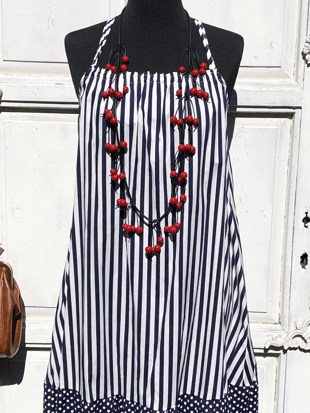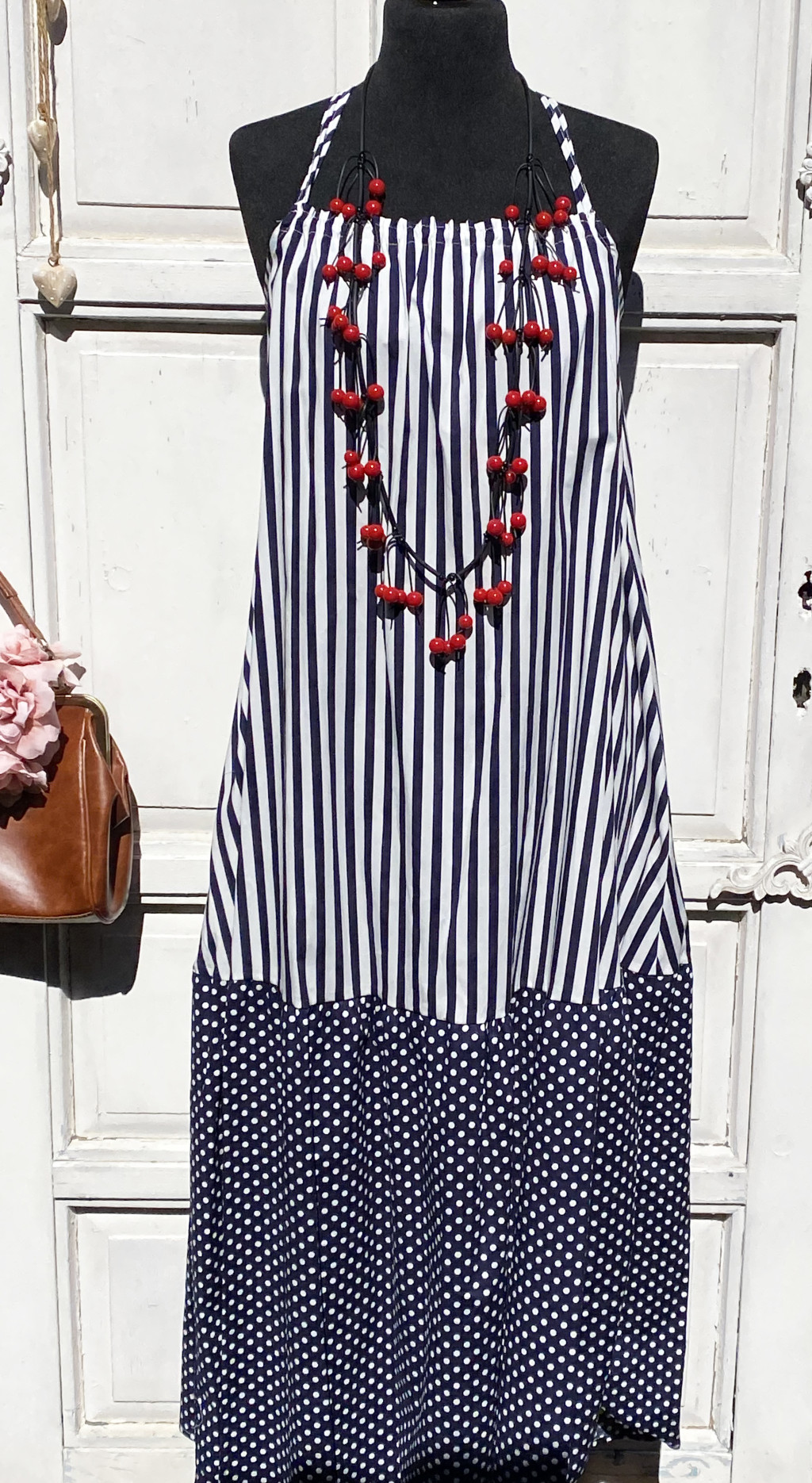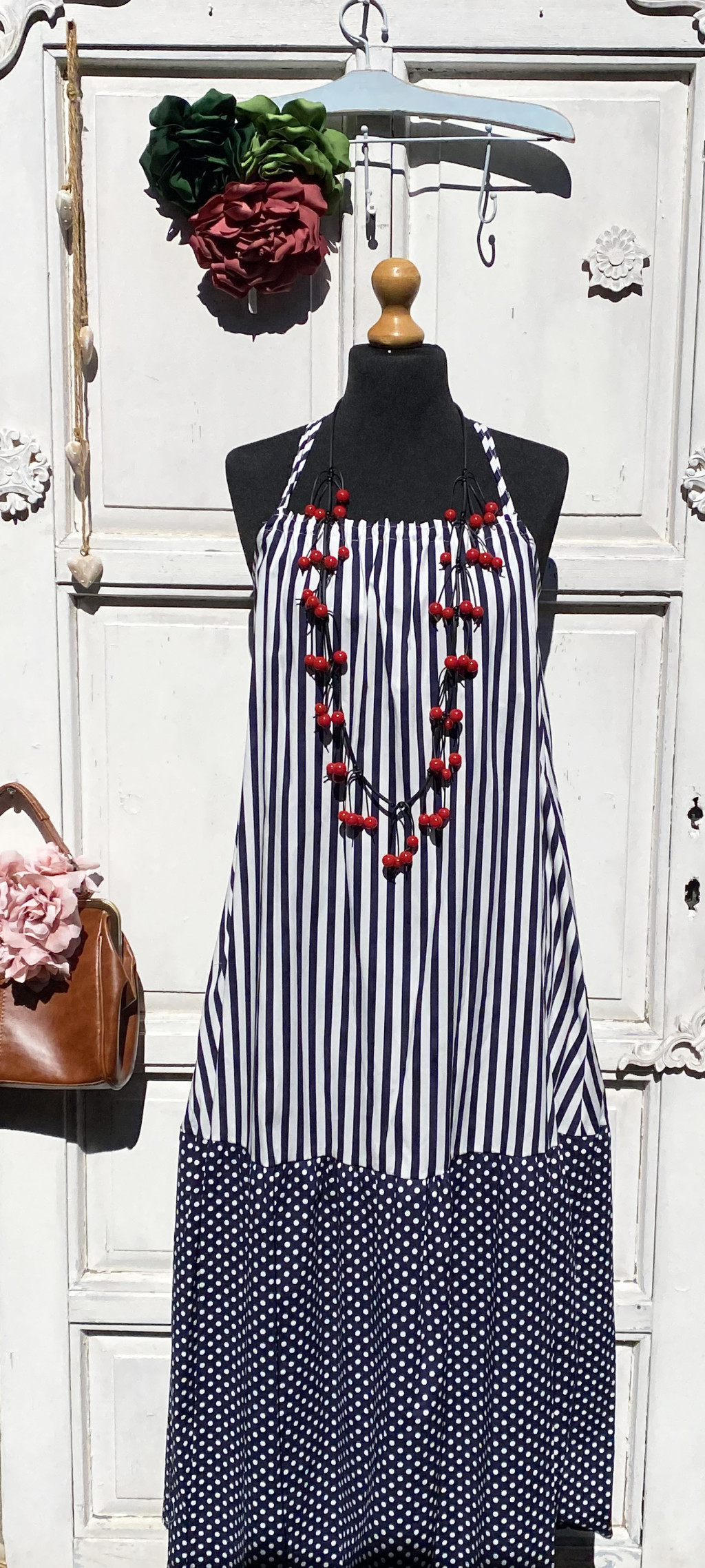 Olasz, csíkos/pöttyös ruha, némi fodorral, kék alappal:))