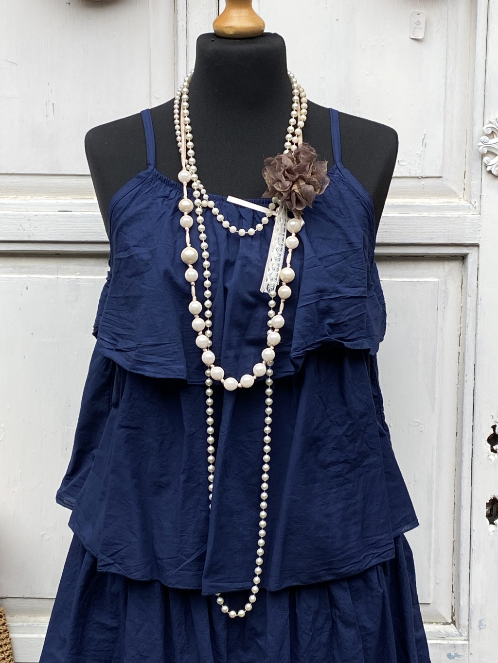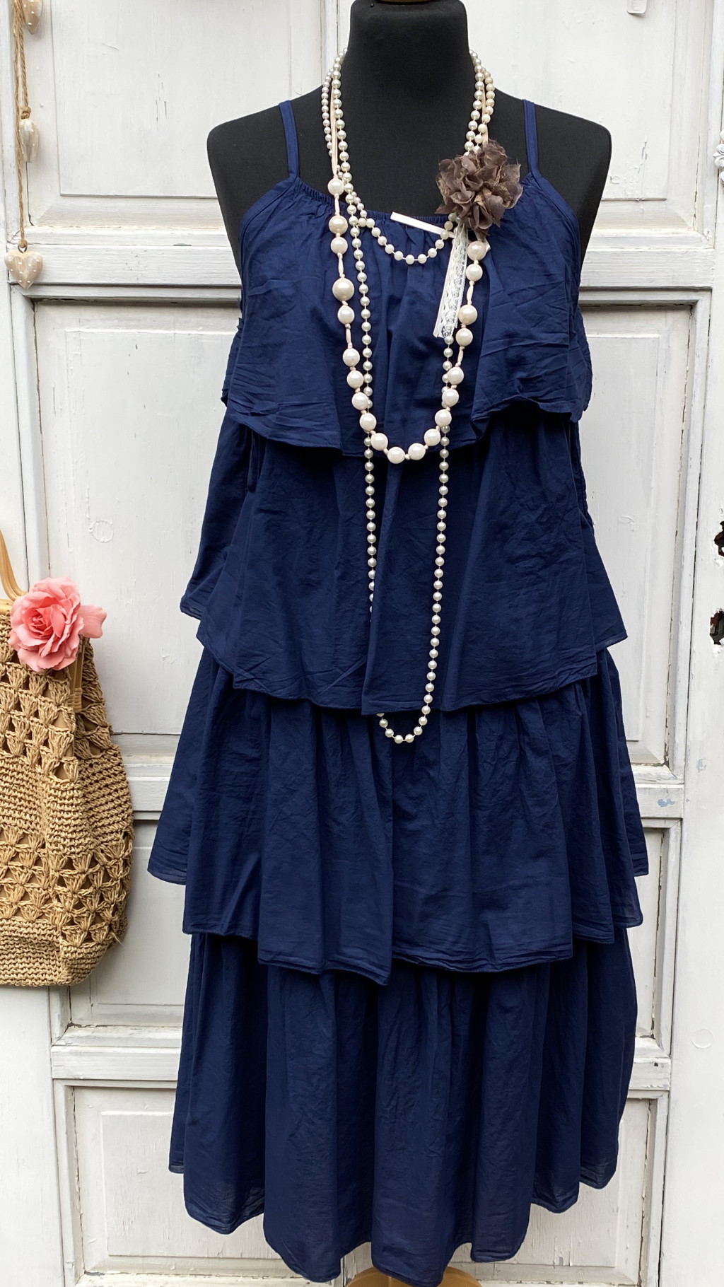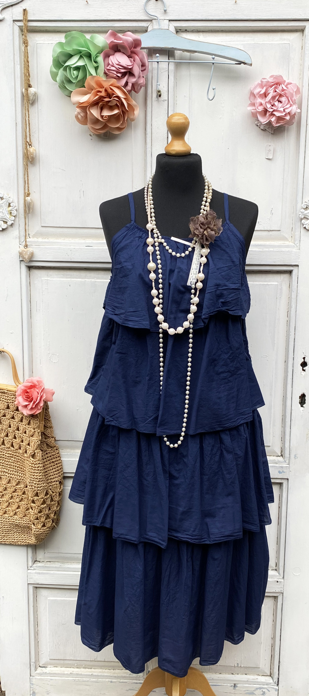 Olasz, rétegelt fodros, spagetti pántos ruha, kék színben:))
