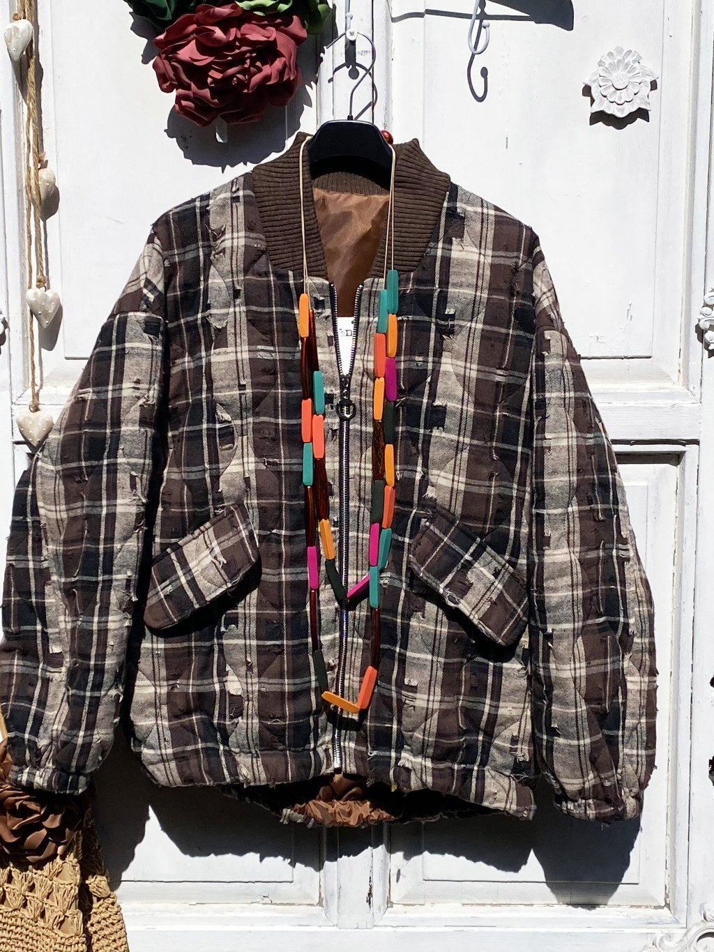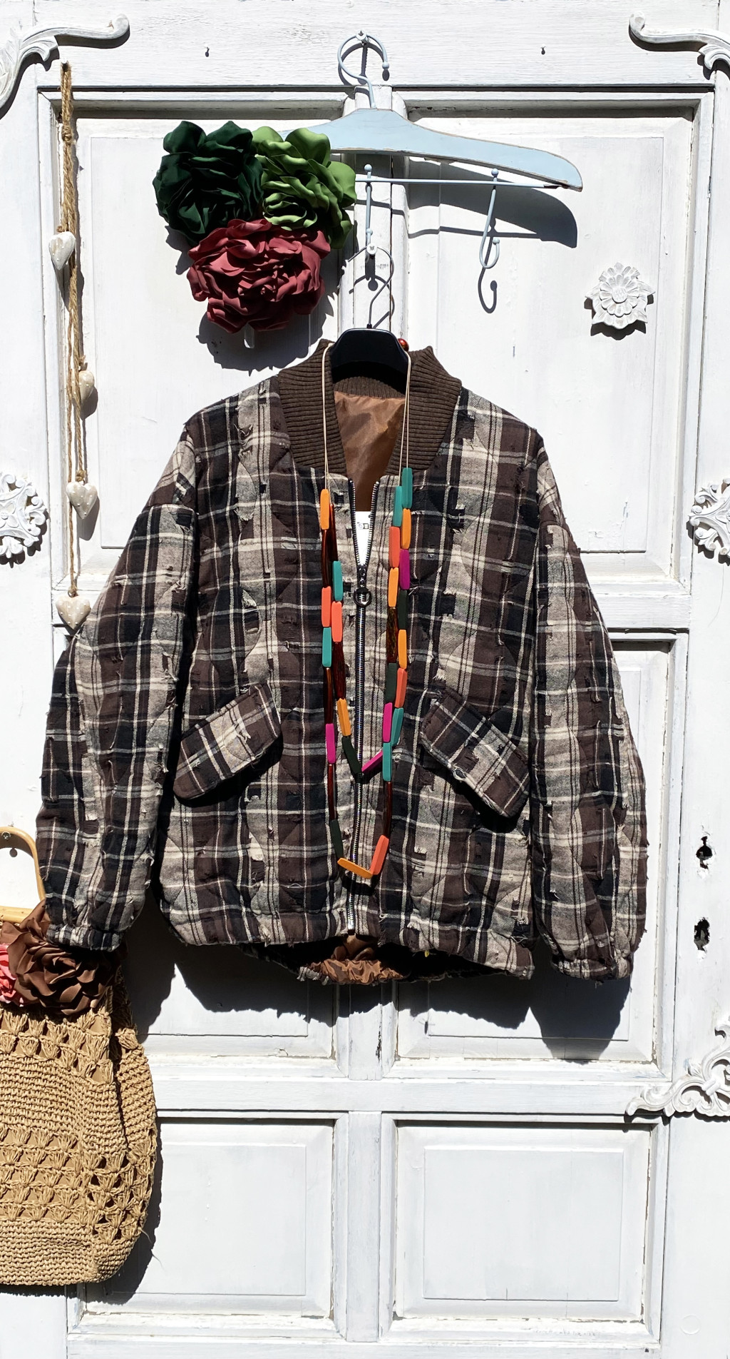 Olasz, igen extra anyagú, steppelt/kockás, zsebes, bélelt kabát, barna/bézs alappal:))