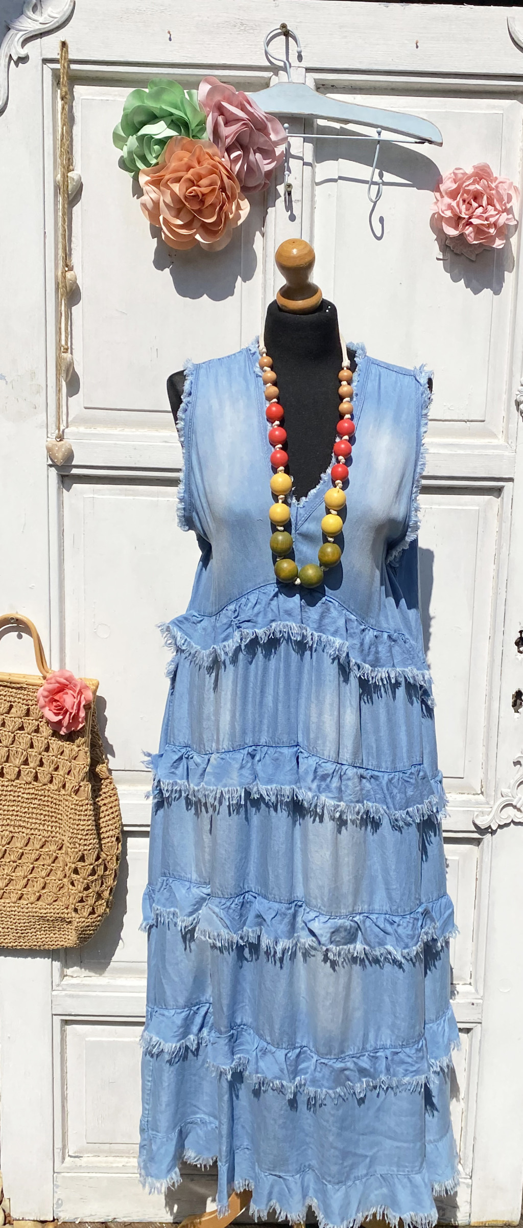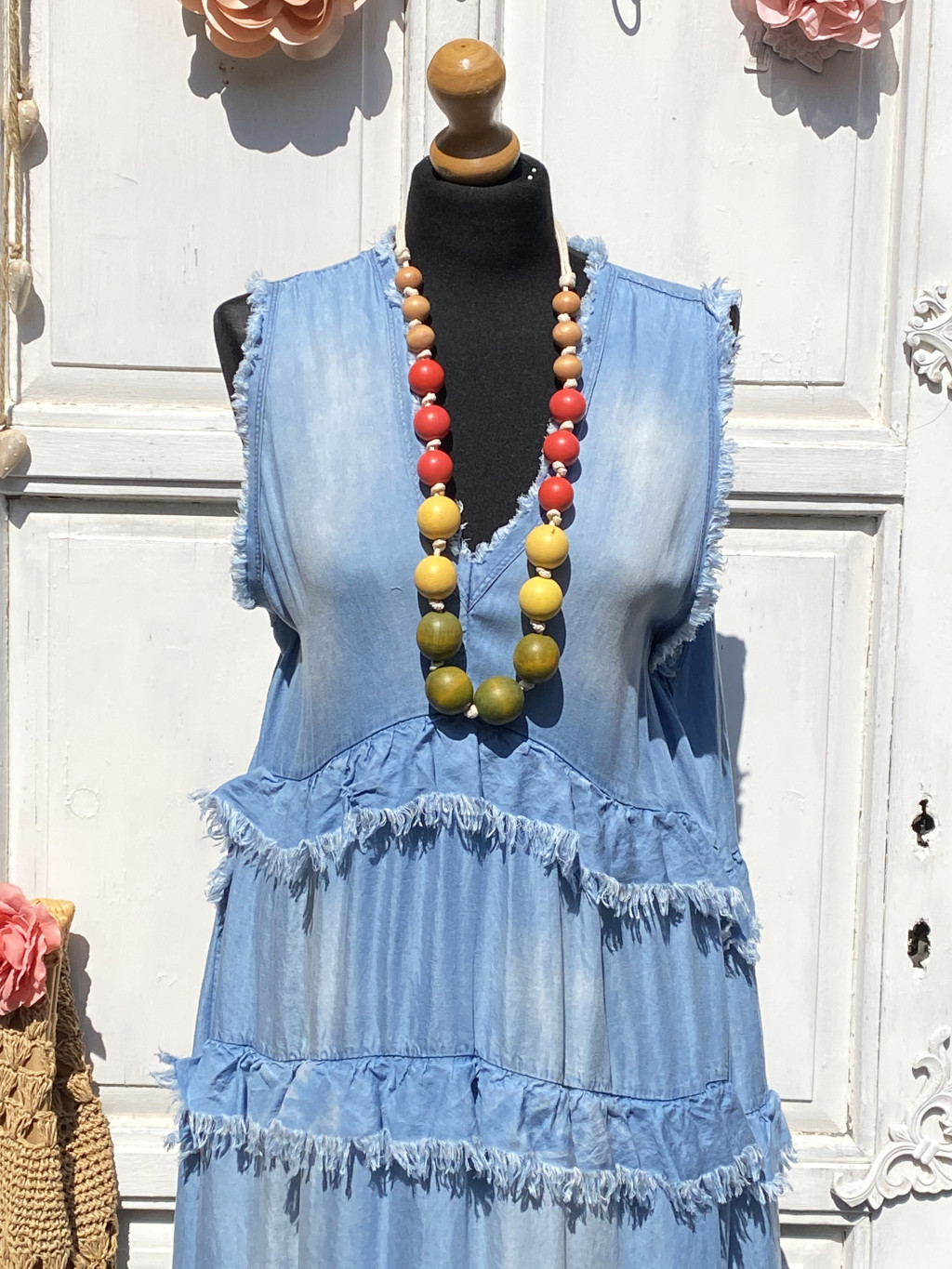 Olasz, rétegelt fodros, vékony farmer ruha, bő szabással:))